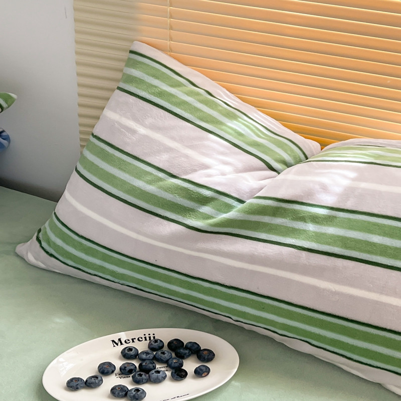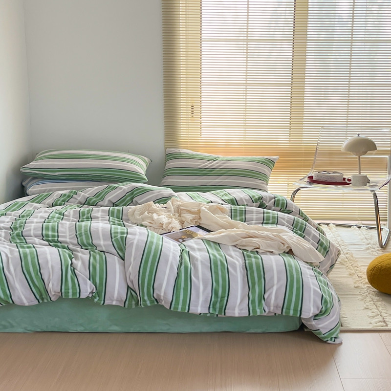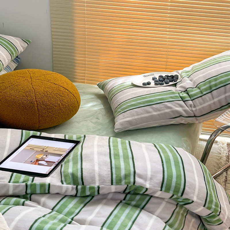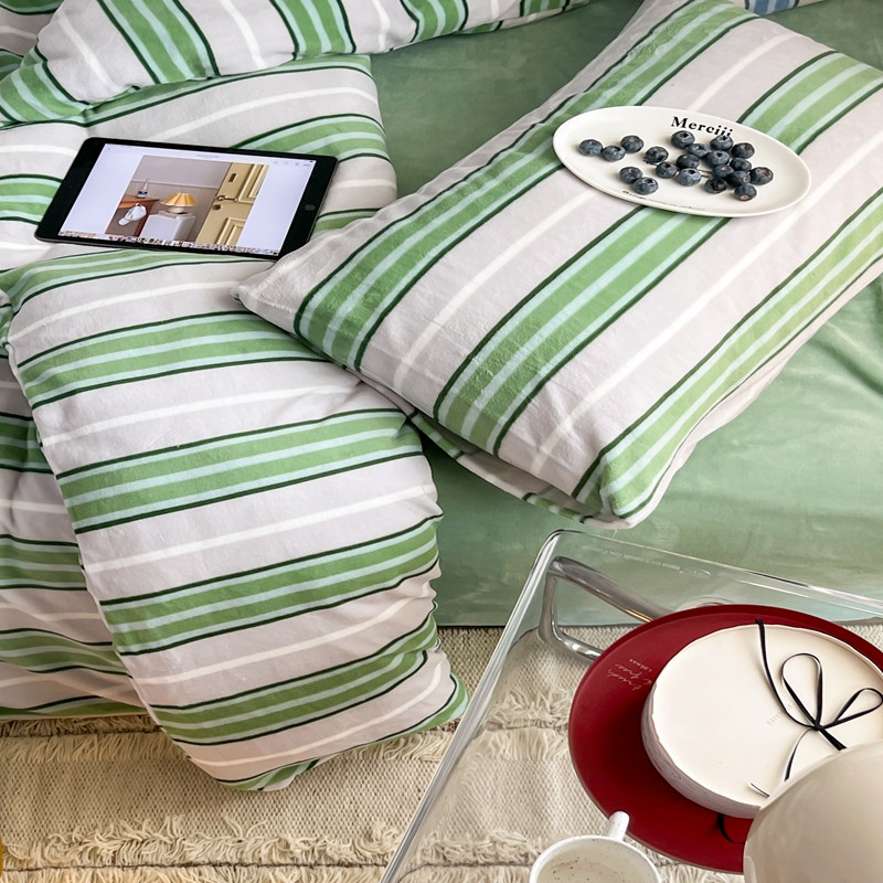 商品名称:昔可 2022新款简约条纹系列牛奶绒四件套 绿竖条