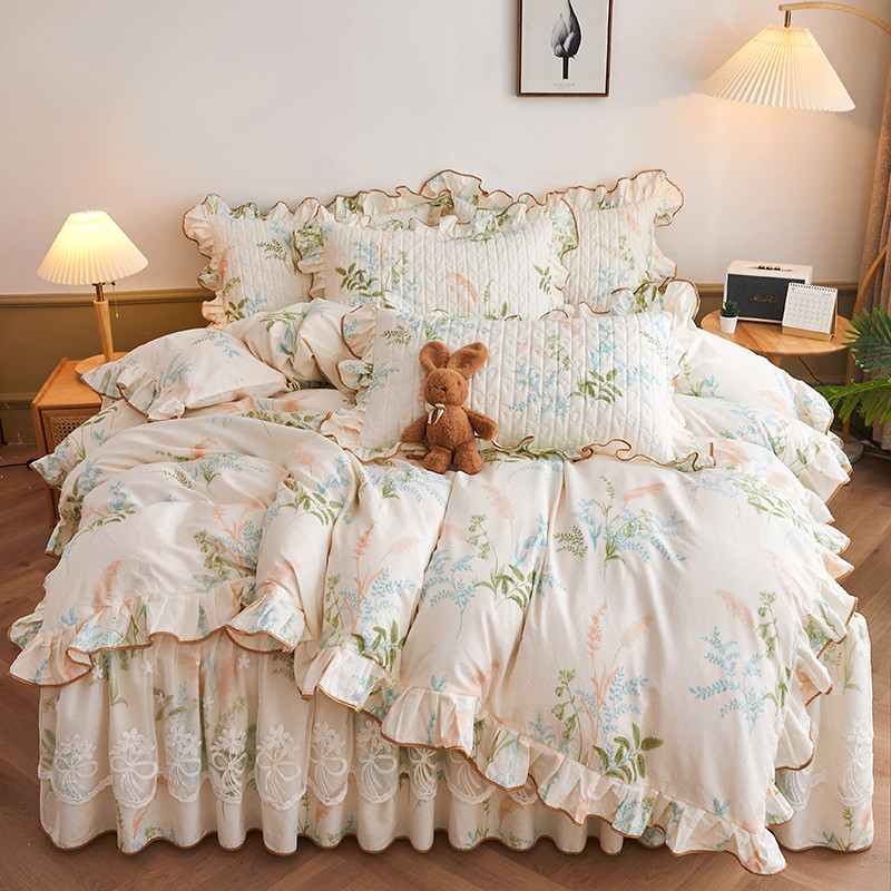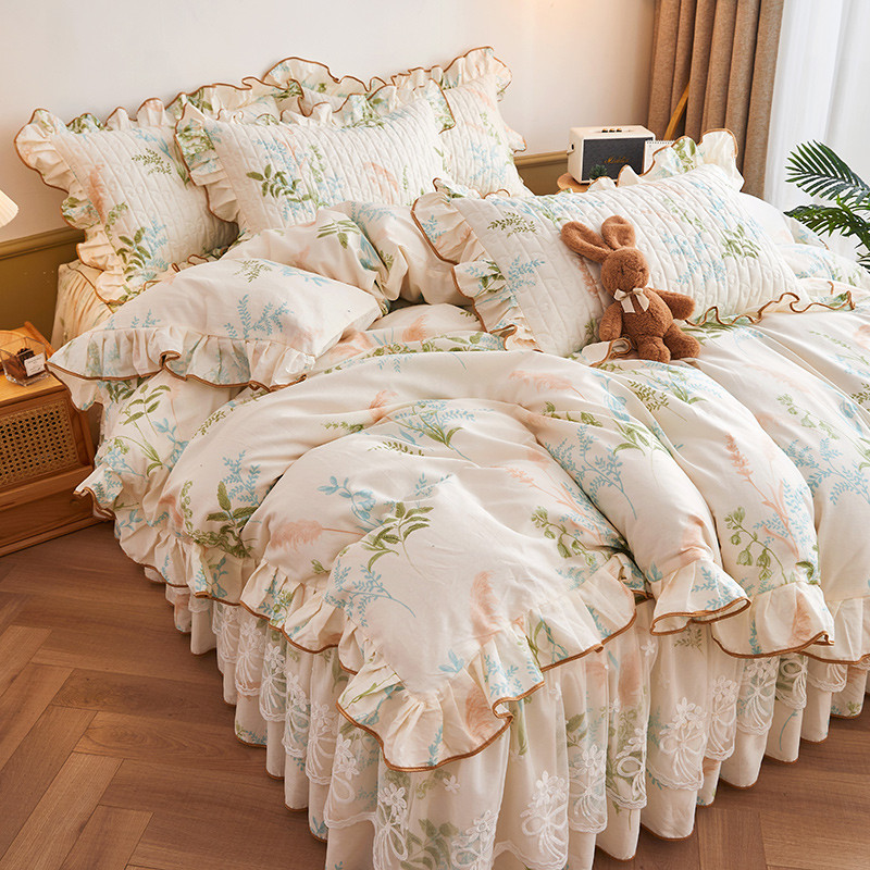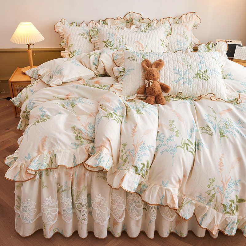 当前位置: 91家纺网 > 商品网购 > 床品套件 > 四件套 > 全棉普通四件套 > 宜凡 2023新款四季款全棉夹棉床裙四件套 茗香玉露