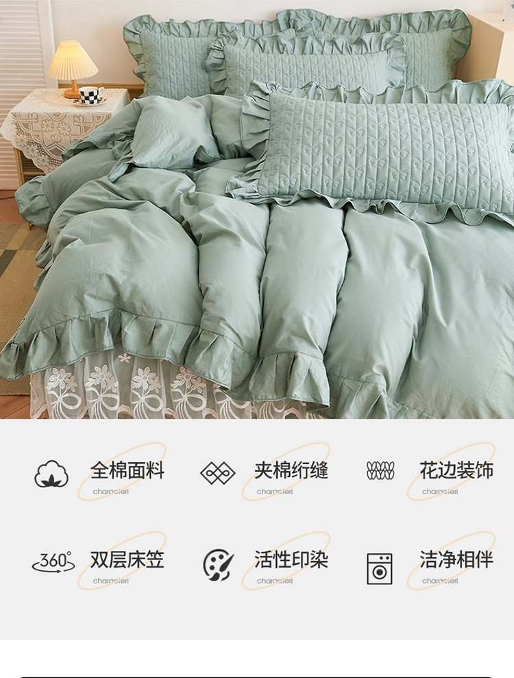 当前位置: 91家纺网 > 商品网购 > 床品套件 > 四件套 > 全棉普通四件套 > 宜凡 2023新款四季款夹棉小清新床笠四件套 春禾集 意境兰