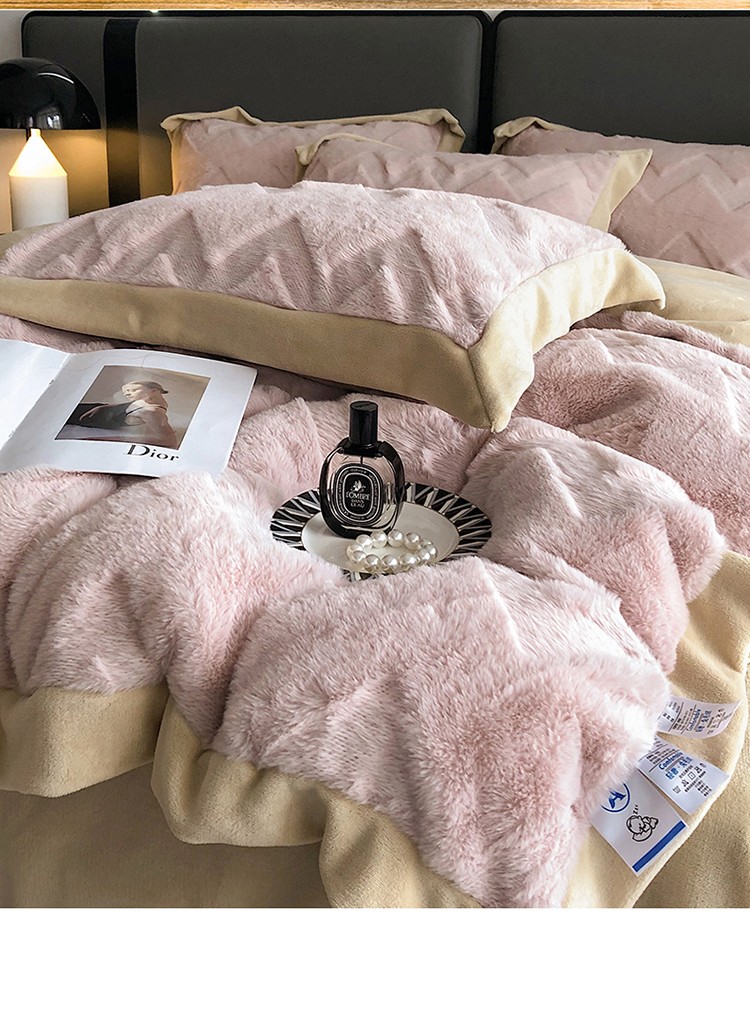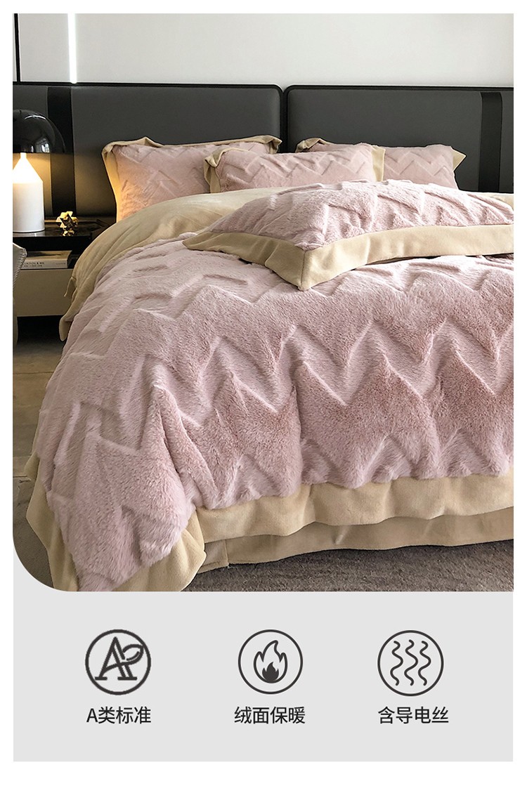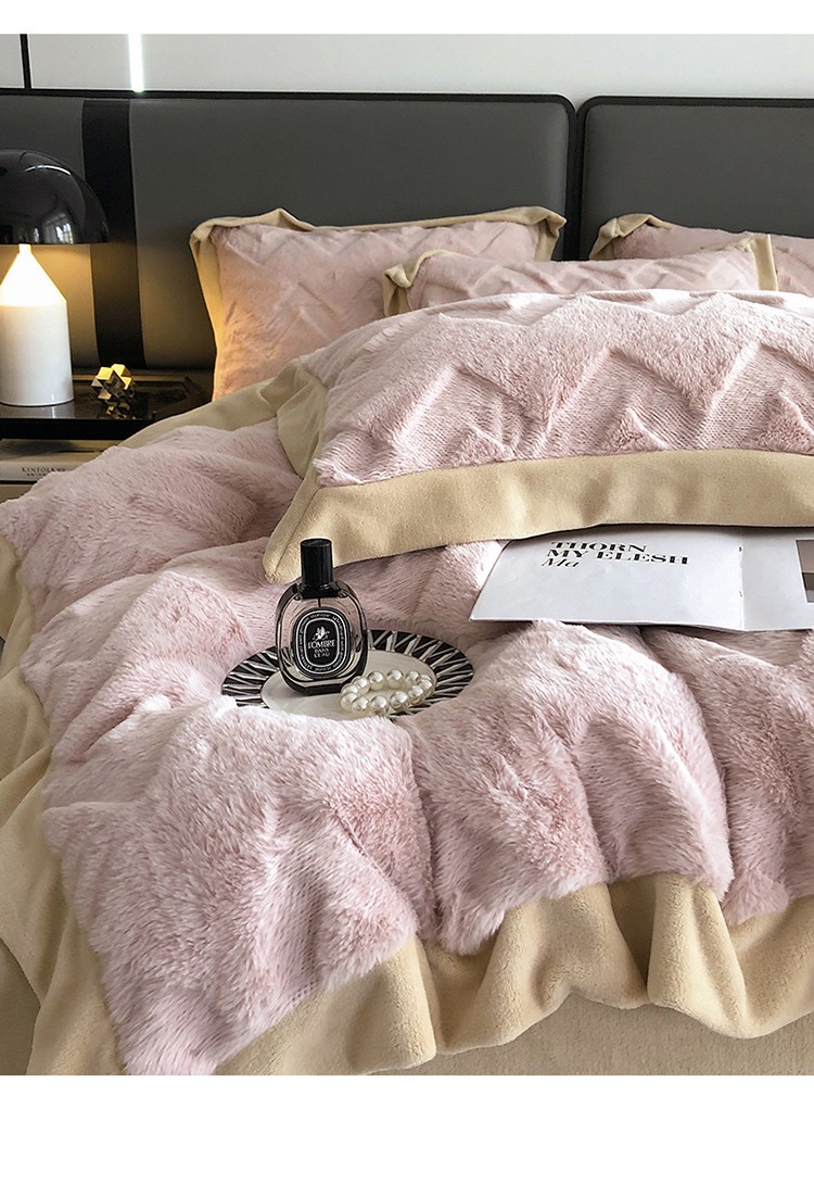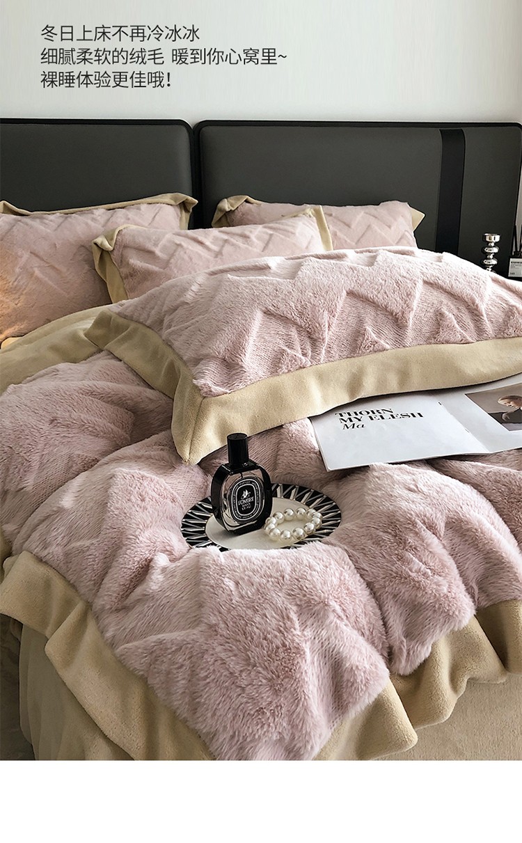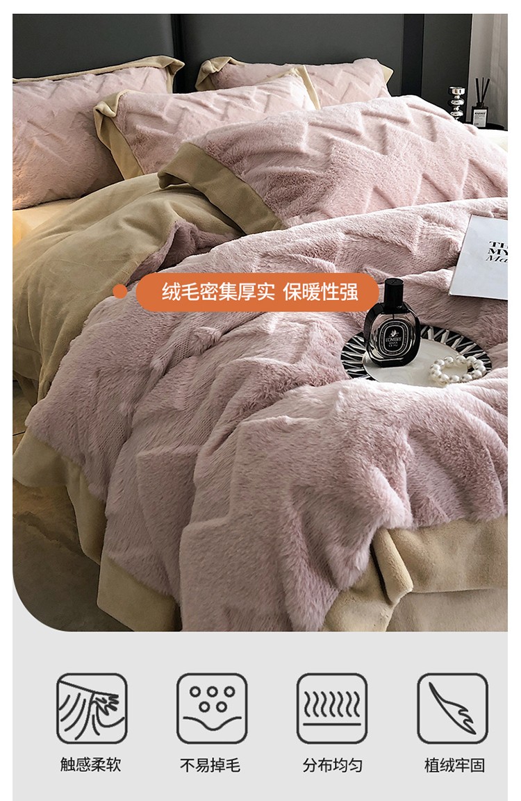 商品名称:罗优 2023新款A类兔毛绒轻奢系列四件套 轻奢-藕粉色