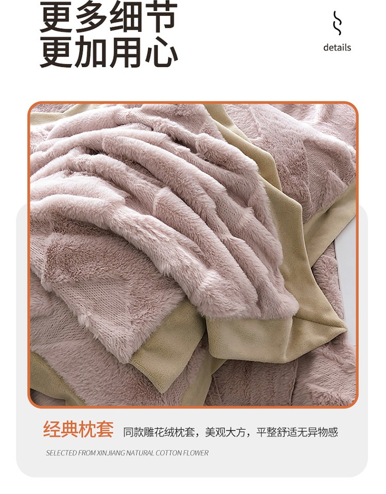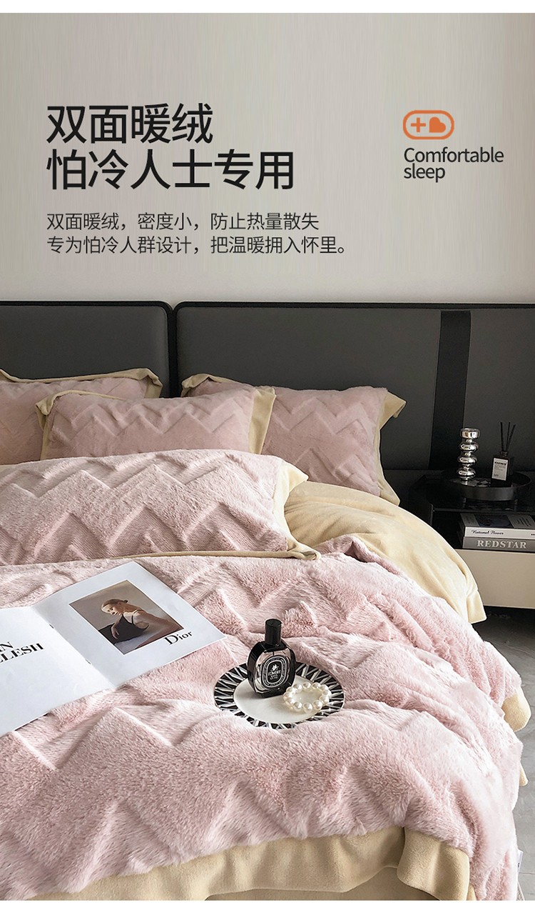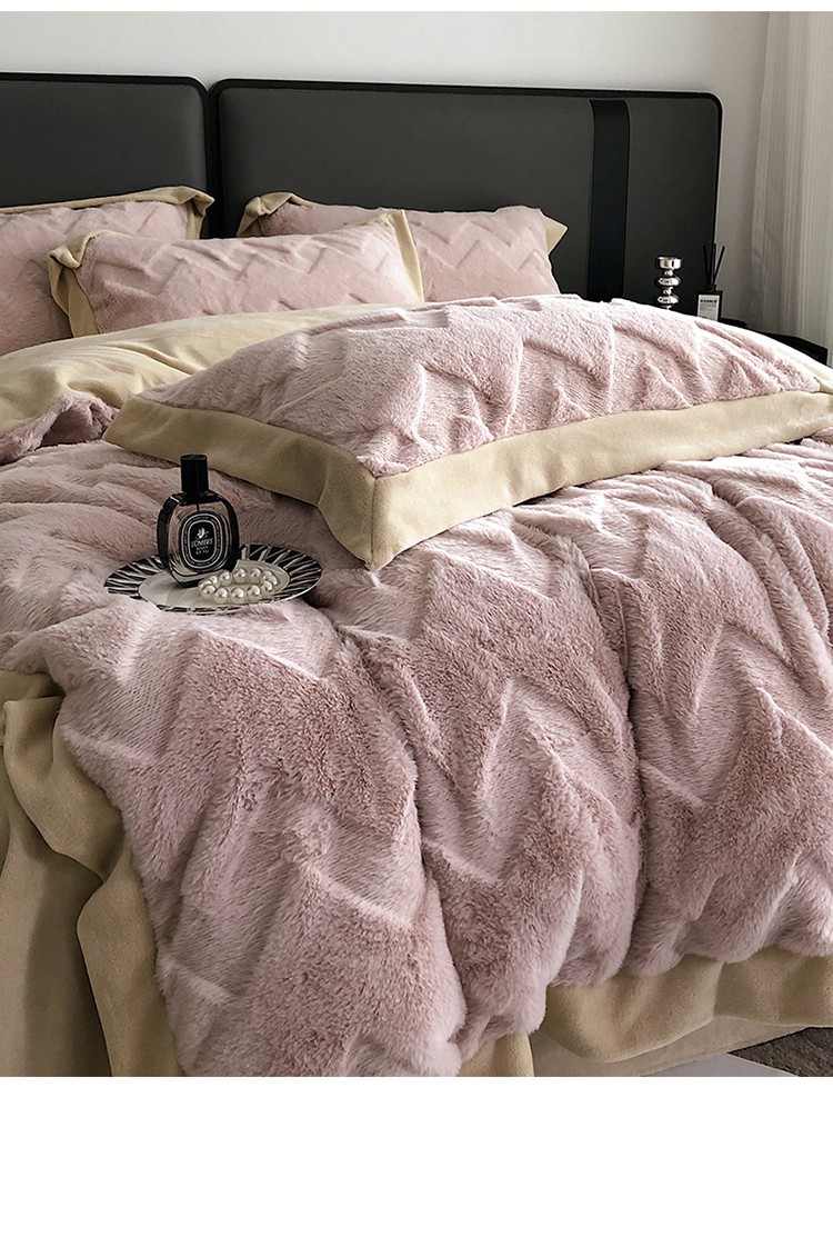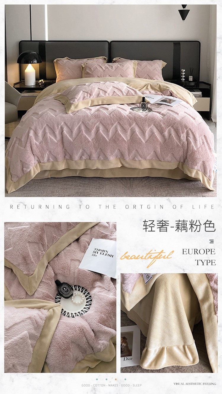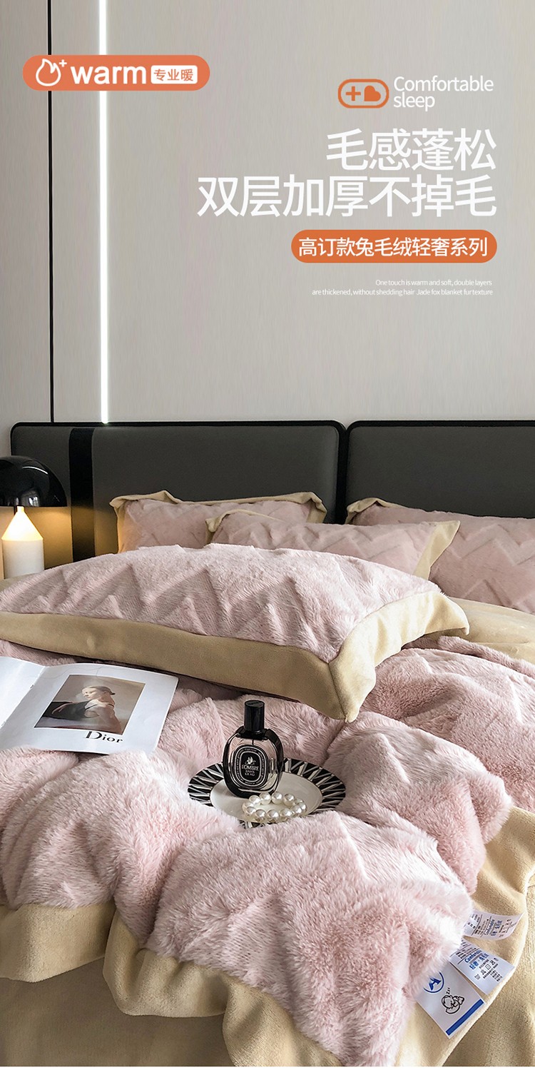 商品名称:罗优 2023新款A类兔毛绒轻奢系列四件套 轻奢-藕粉色