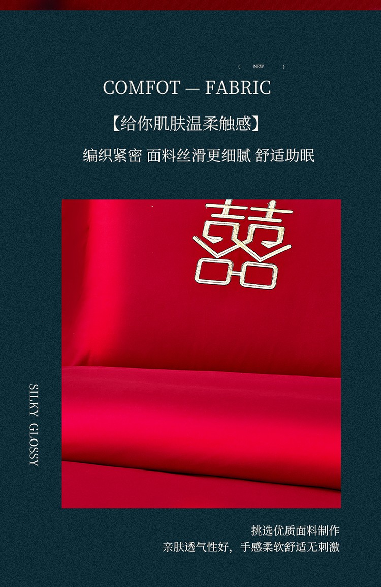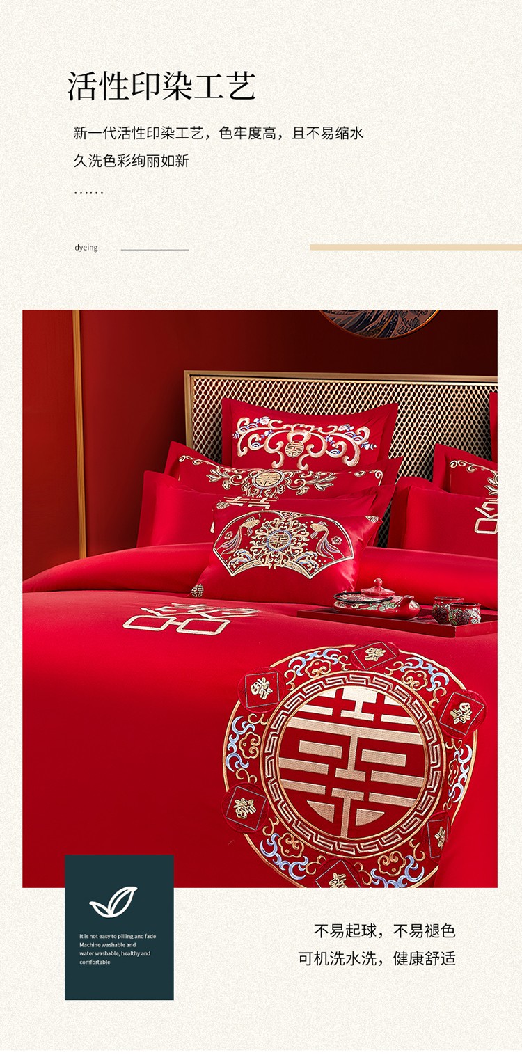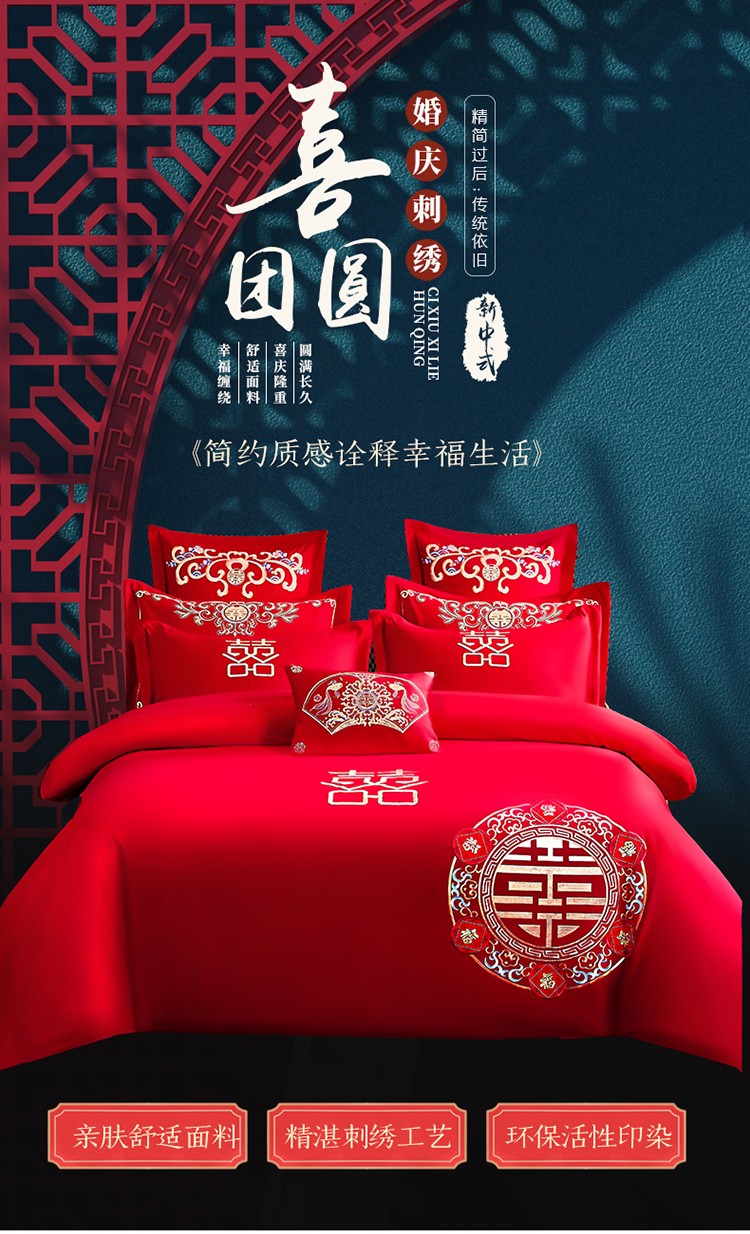 当前位置: 91家纺网 > 商品网购 > 床品套件 > 四件套 > 婚庆四件套 > 玉雅家纺 2025新款婚庆亲肤棉刺绣四件套 喜团圆
