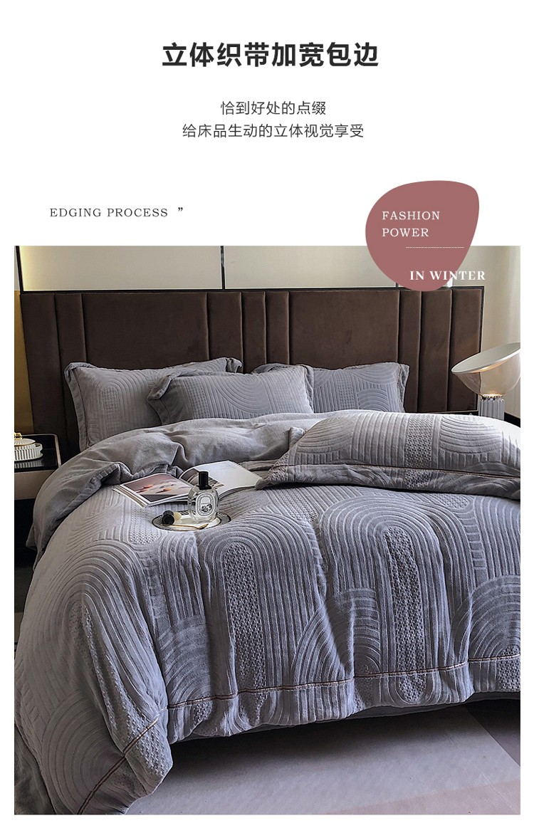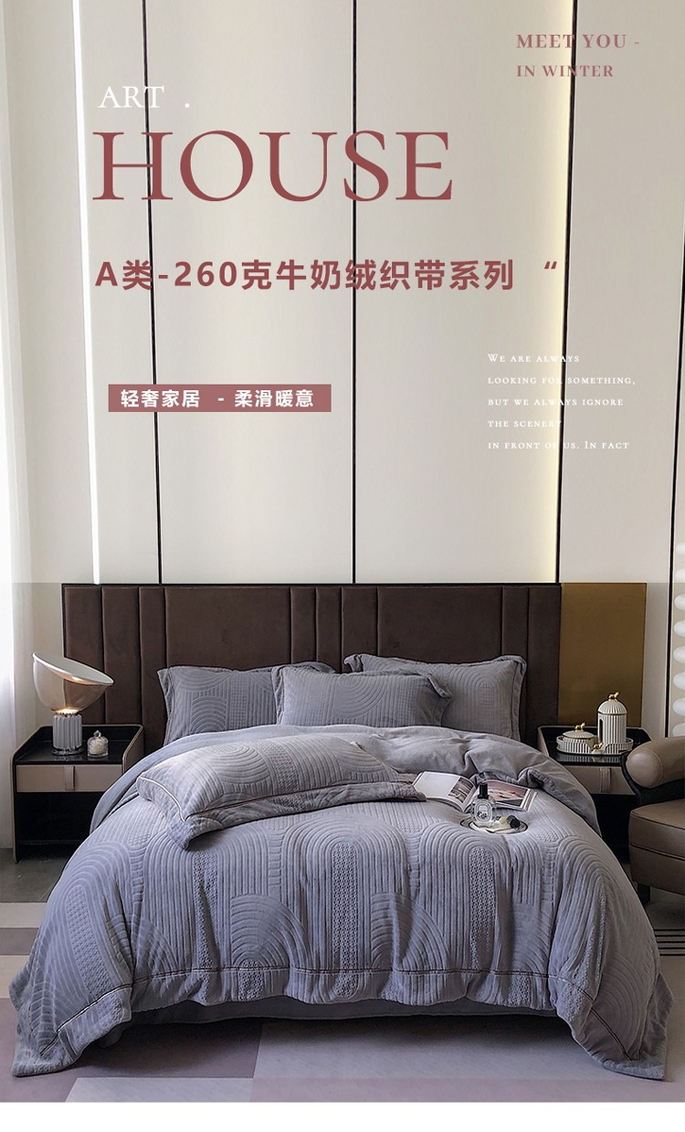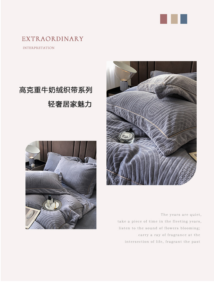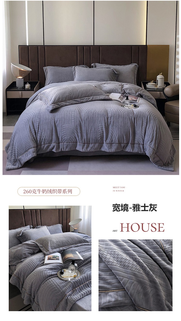宜代光年 新款260克全消光牛奶绒织带系列四件套宽境-雅士灰