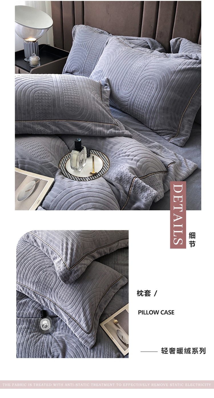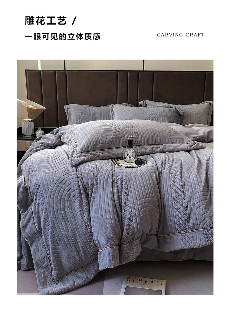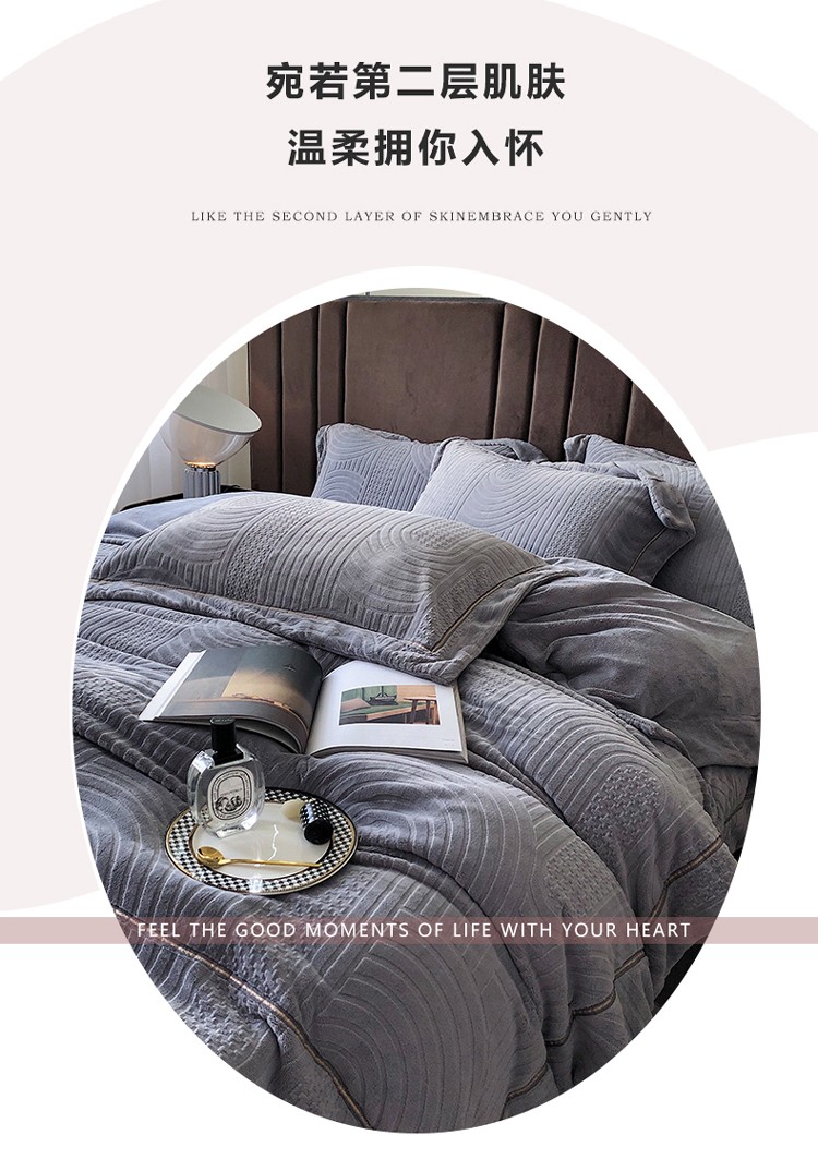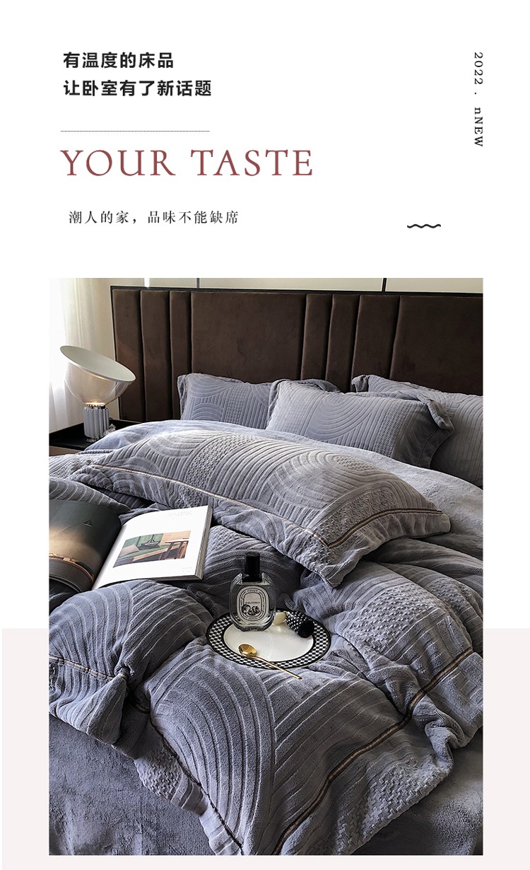 宜代光年 新款260克全消光牛奶绒织带系列四件套宽境-雅士灰
