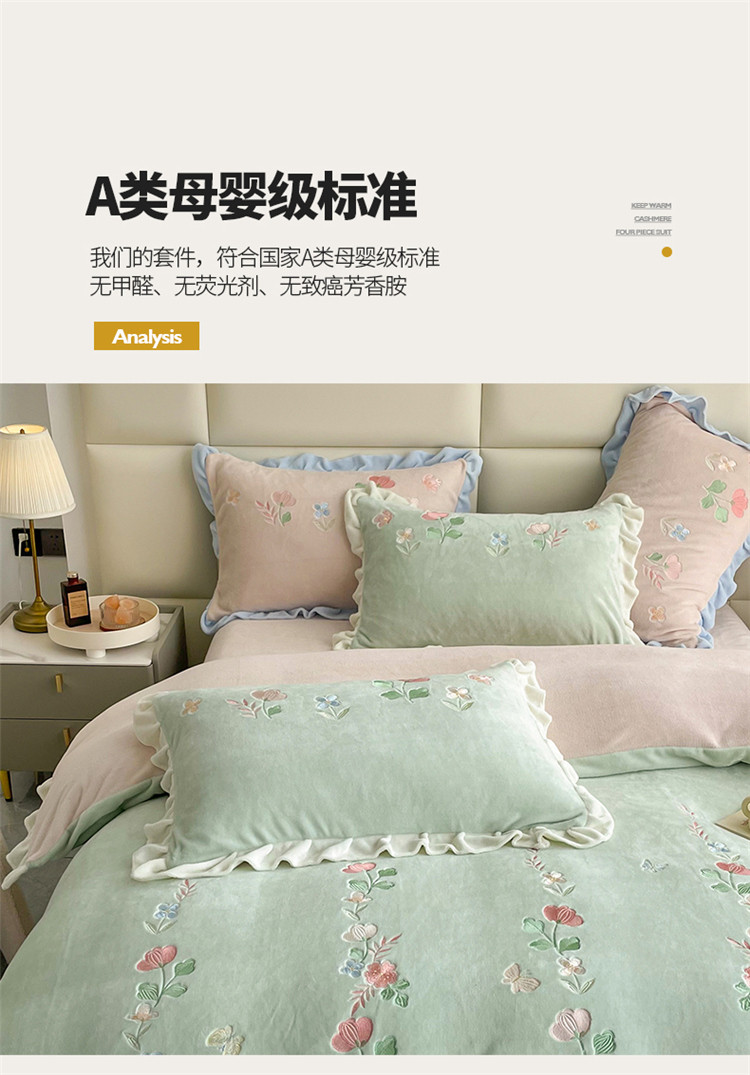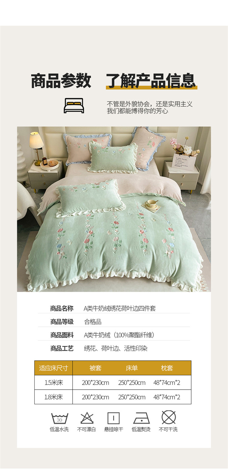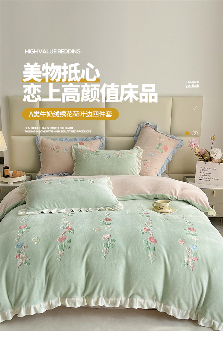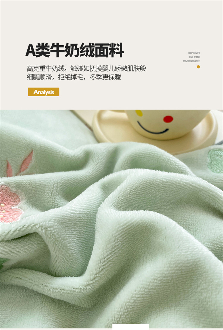 (总)懒猫 2022新款牛奶绒绣花四件套-慕叶花意
