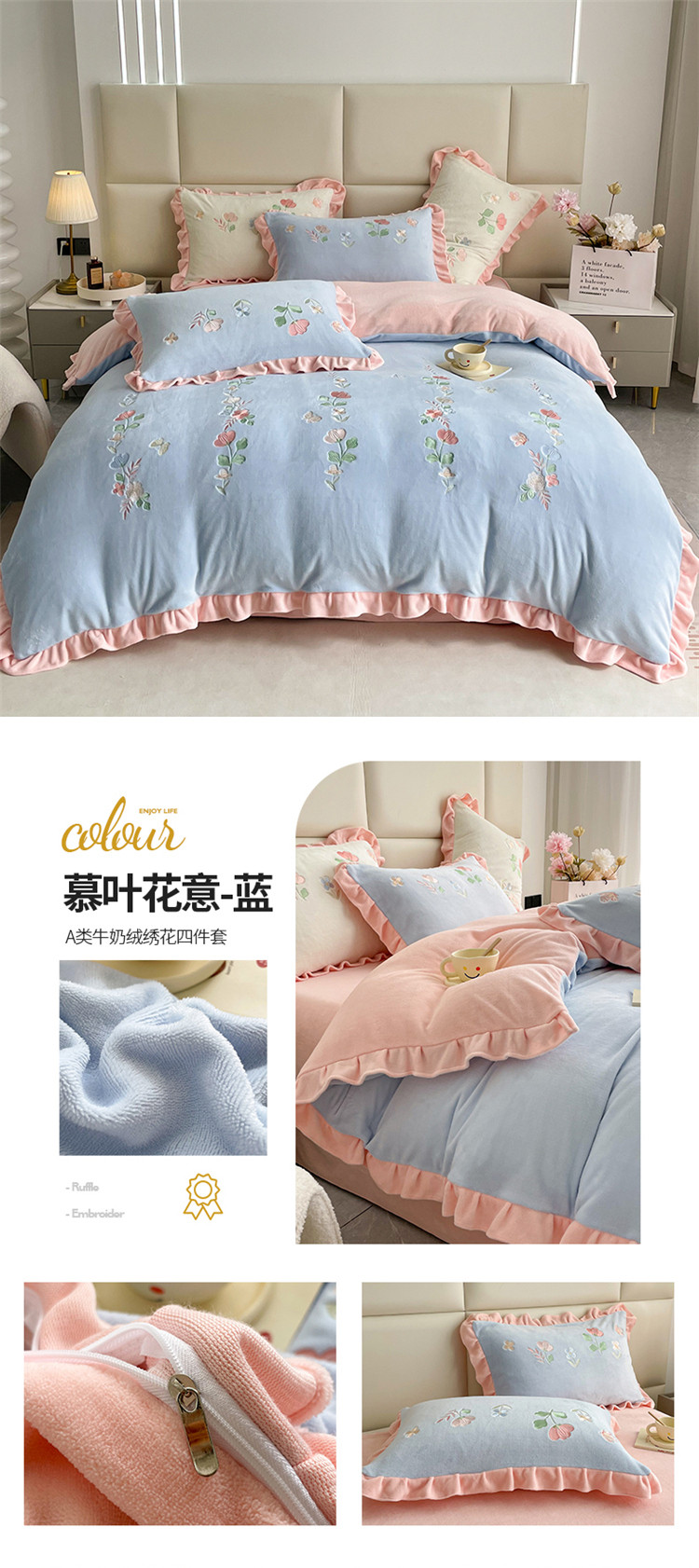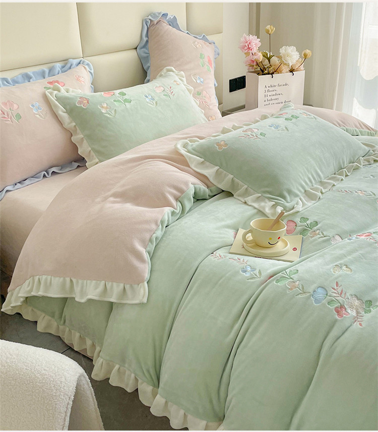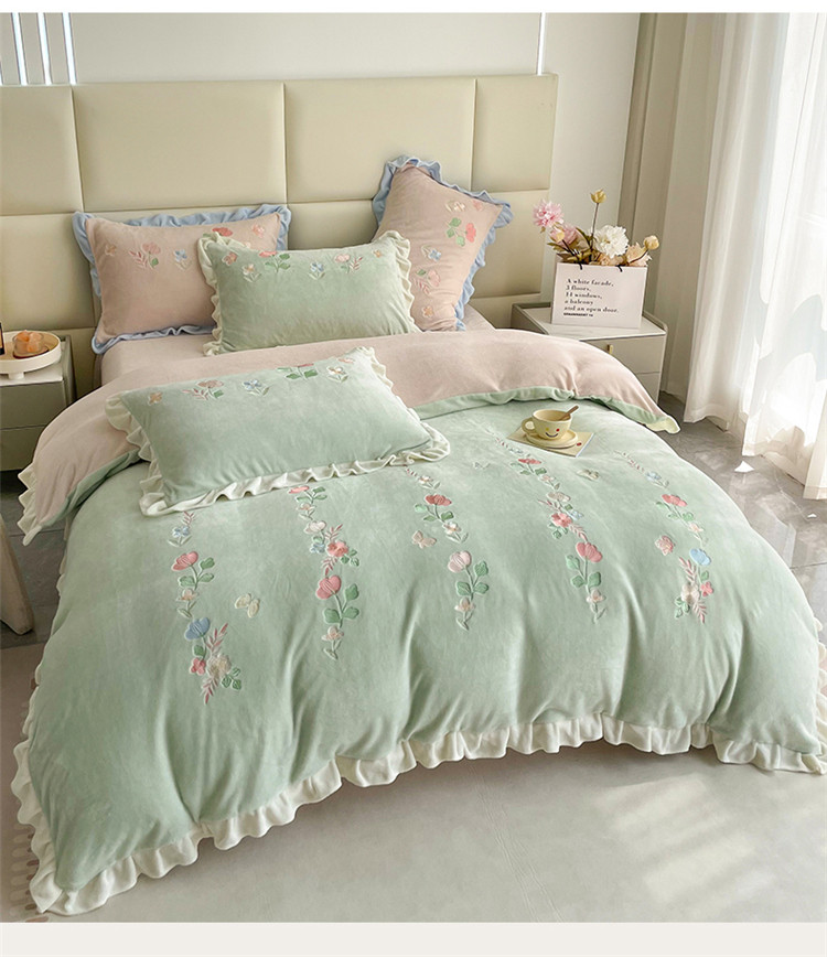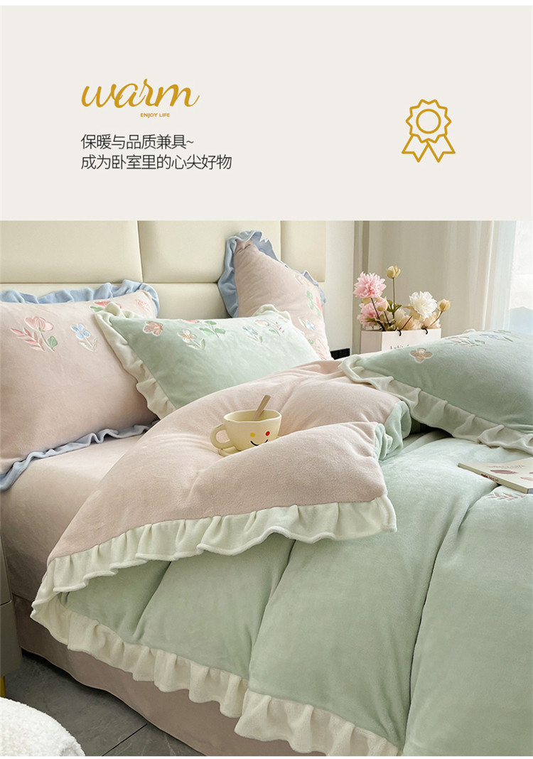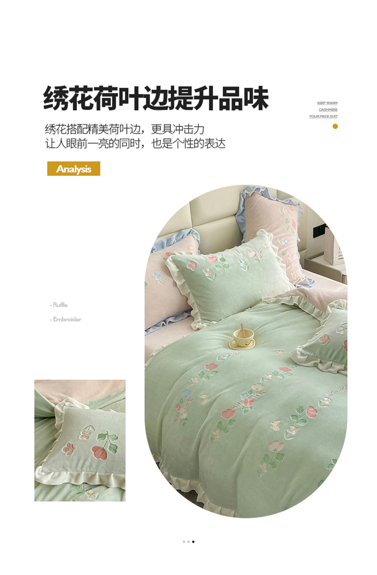 (总)懒猫 2022新款牛奶绒绣花四件套-慕叶花意