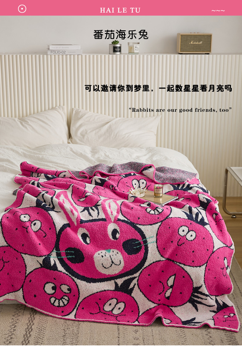 商品名称:暖绵绵 新款半边绒毛毯-番茄海乐兔 黄色