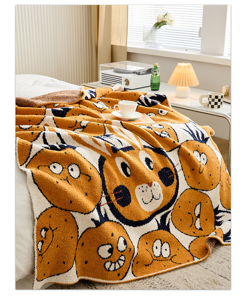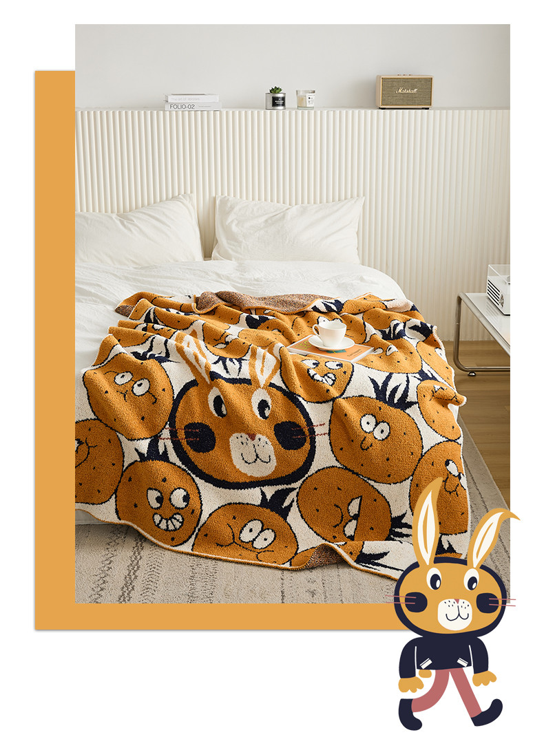 暖绵绵 新款半边绒毛毯-番茄海乐兔 黄色