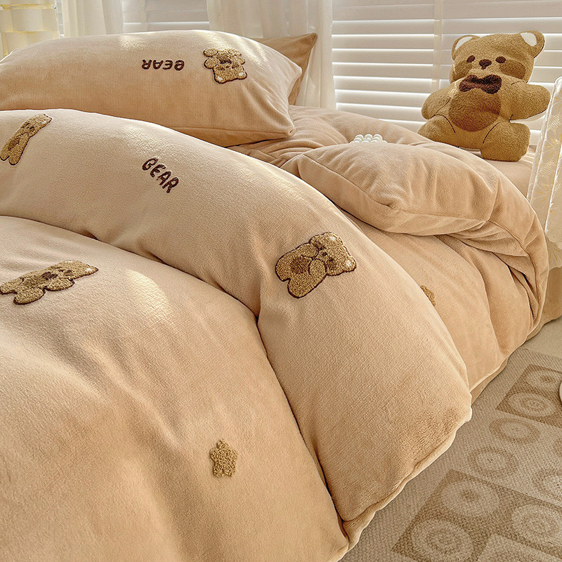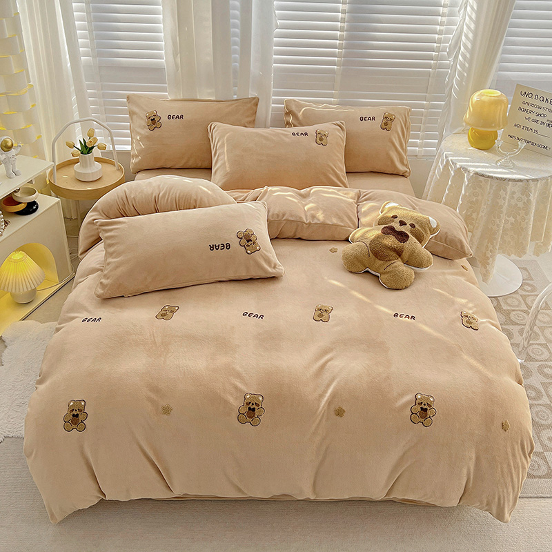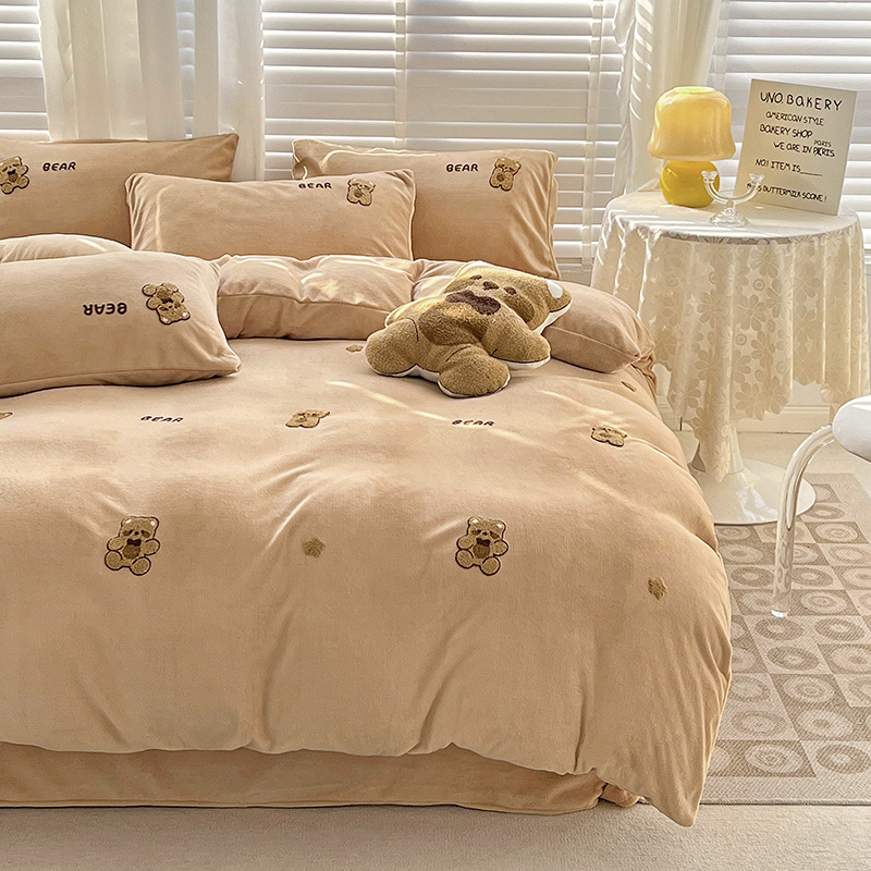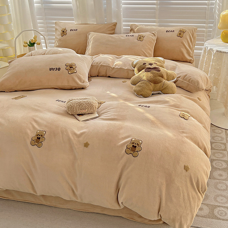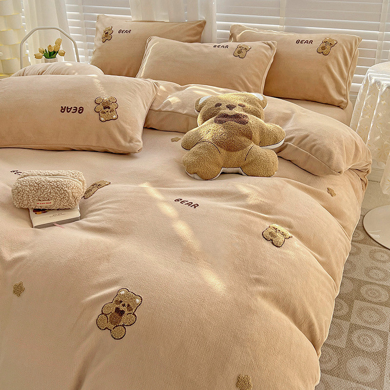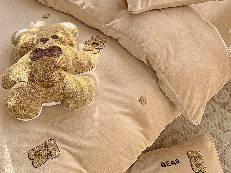 寐居2022新款毛巾绣牛奶绒单被套 萌萌熊咖