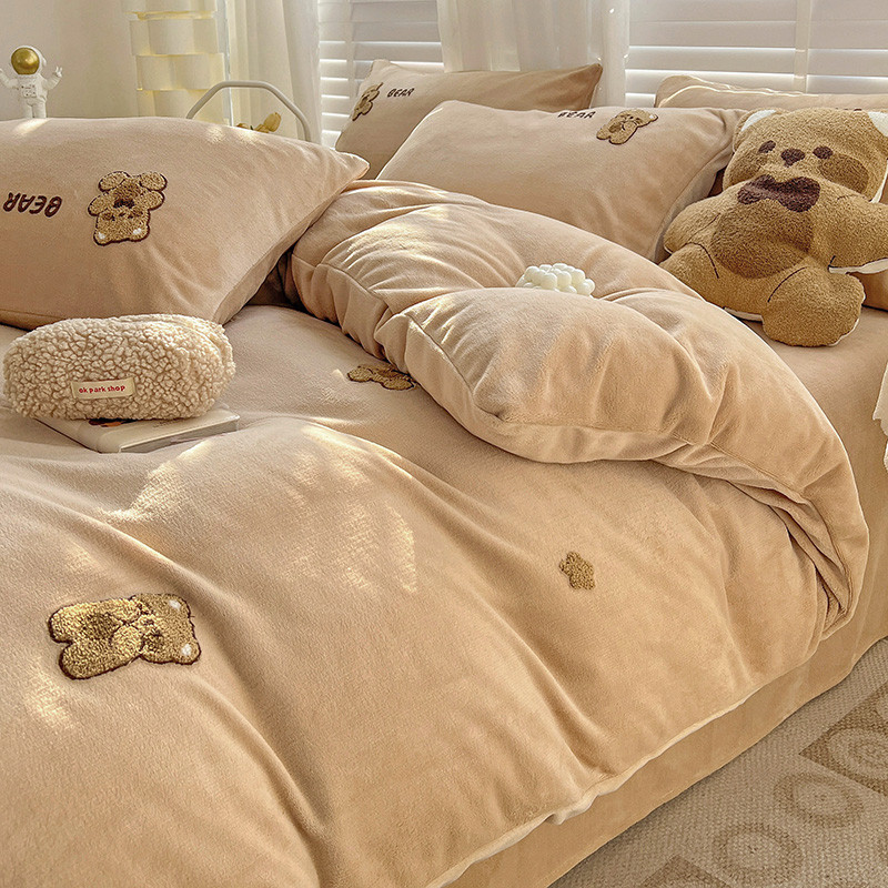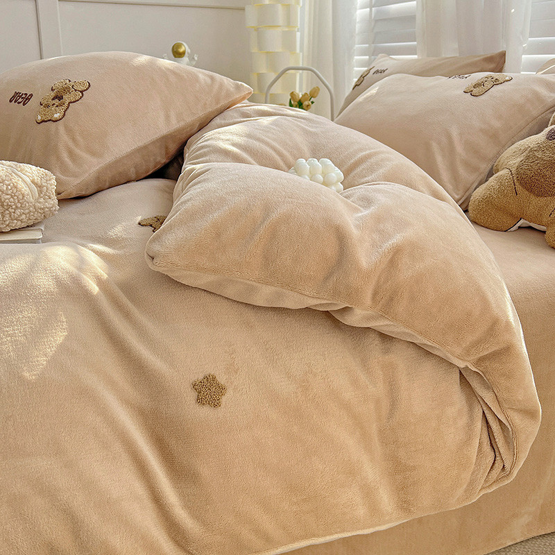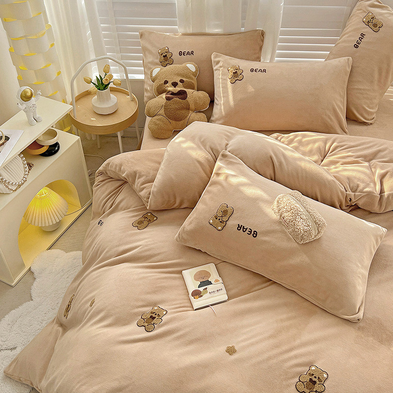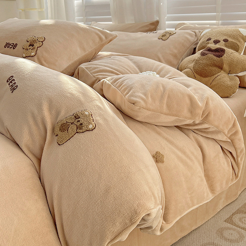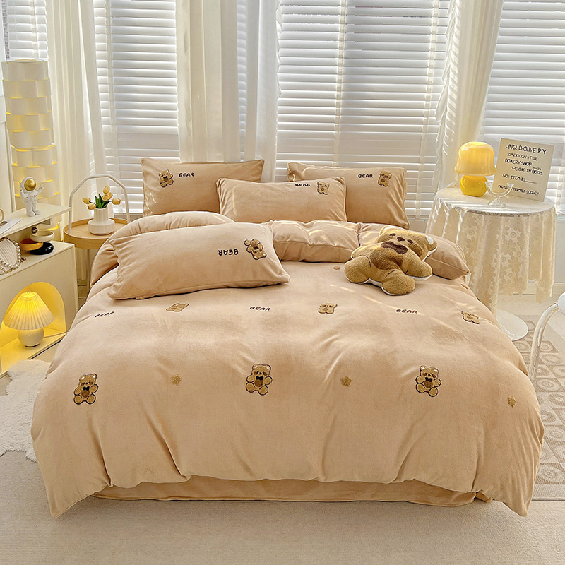 寐居2022新款毛巾绣牛奶绒单被套 萌萌熊咖
