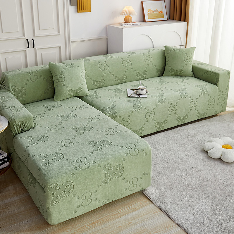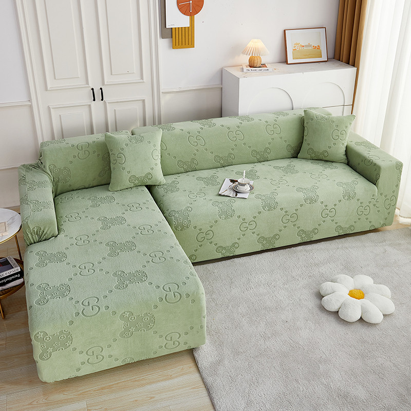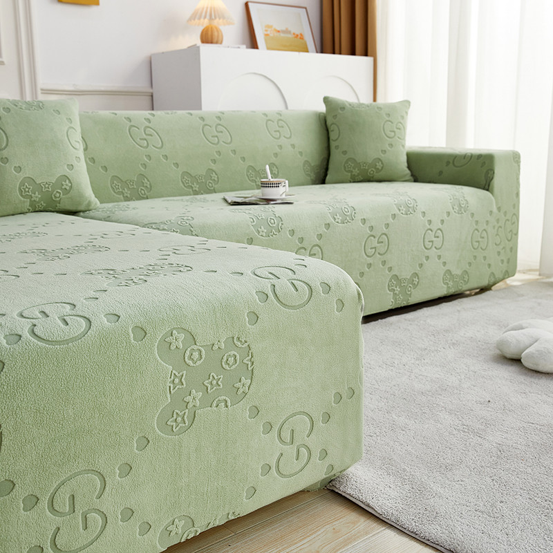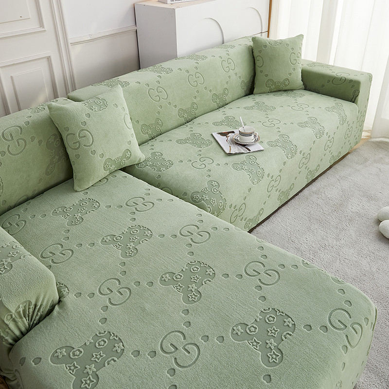 逐日沙发套 2023新款提花绒贵妃沙发套 酷熊-抹茶色