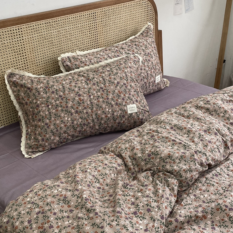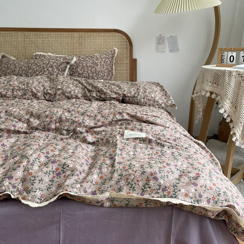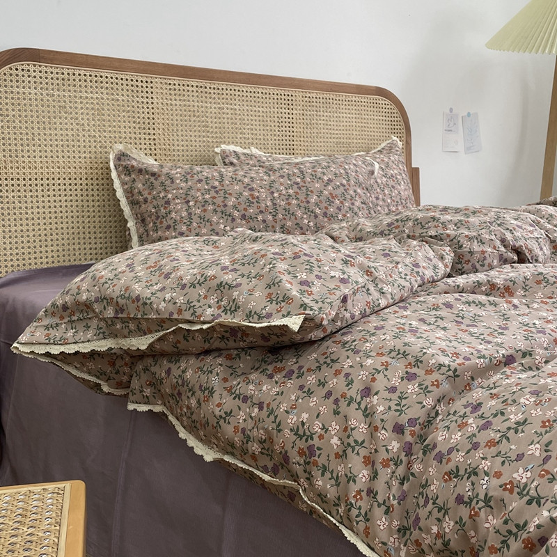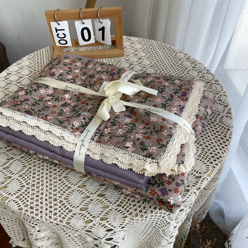 源启生活 2022新款全棉法式田园风花边款四件套 地丁