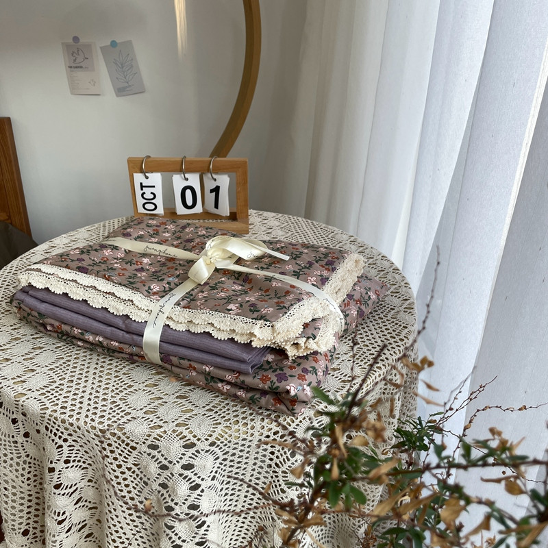 商品名称:源启生活 2022新款全棉法式田园风花边款四件套 地丁