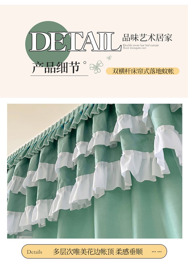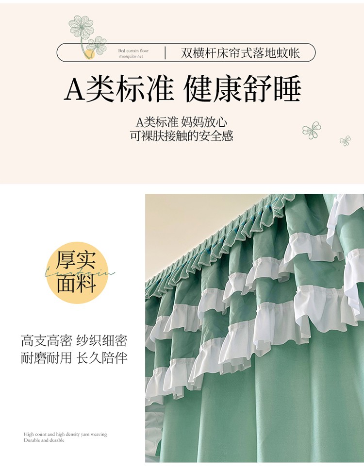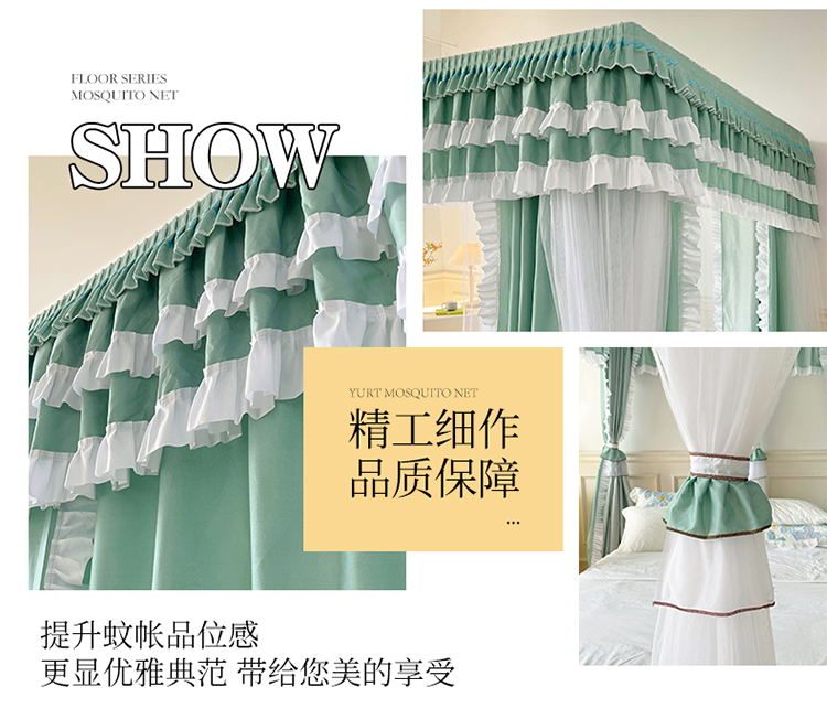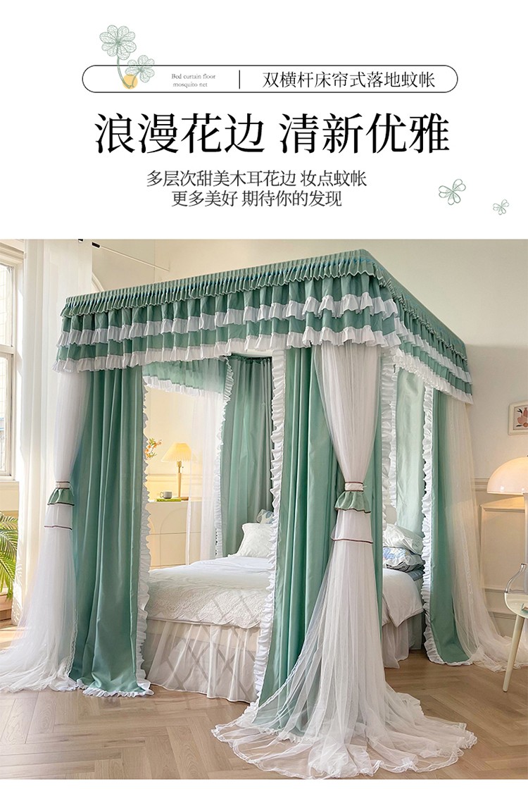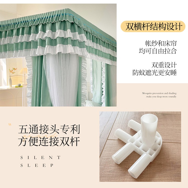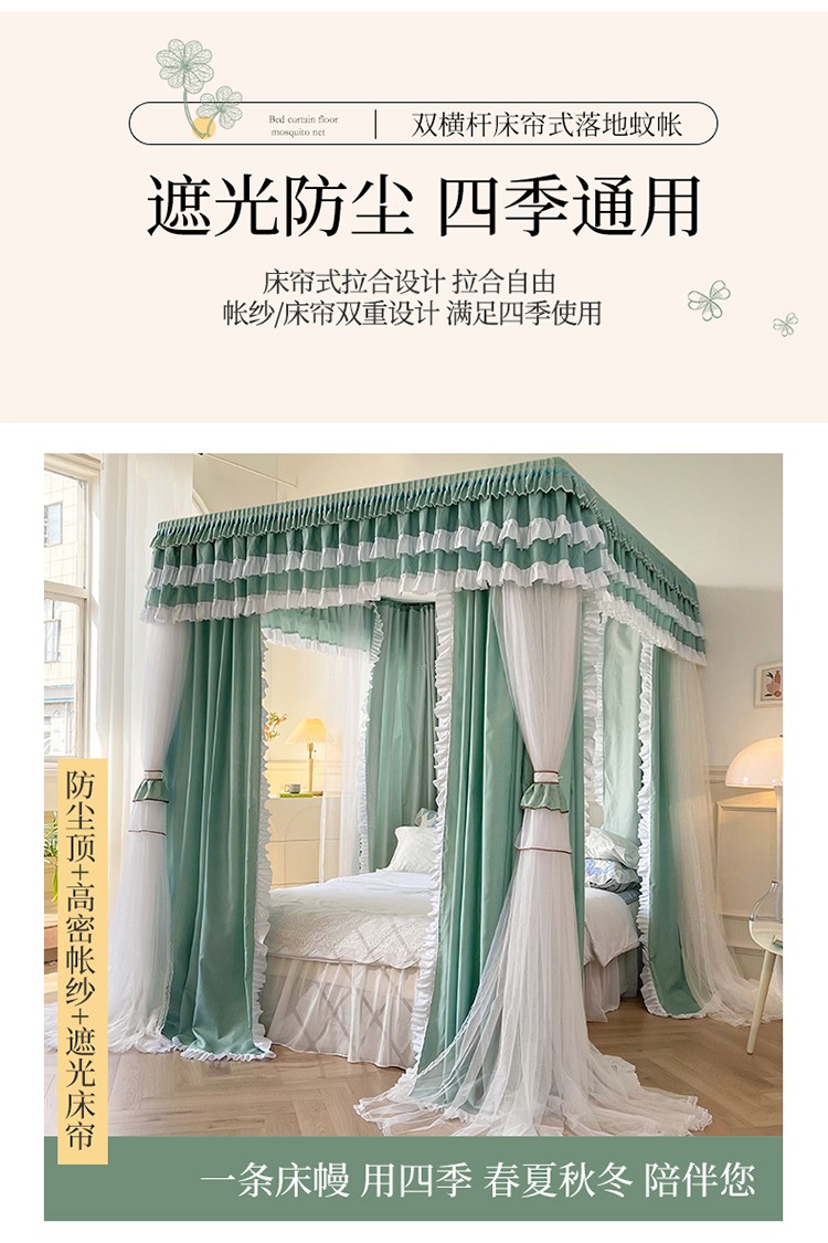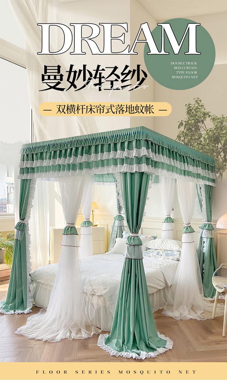 商品名称:迪凡保罗 2023新款2303五通双杆落地双层遮光蚊帐 抹茶绿