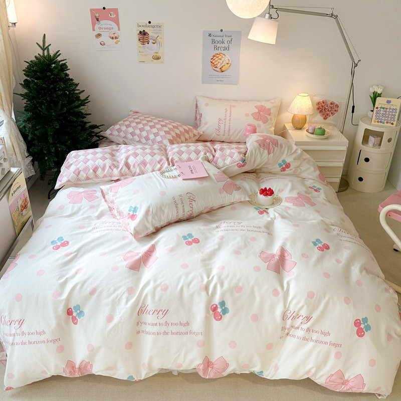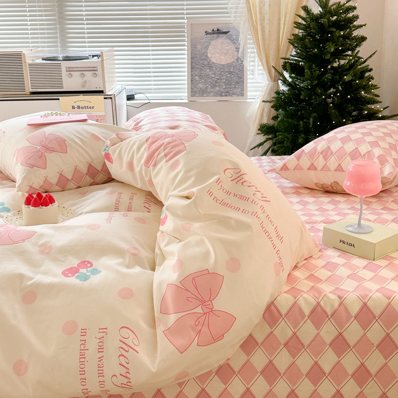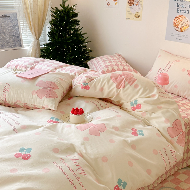 (总)昔可家纺 2024新款印花牛奶绒四件套系列-ins少女系列,芭蕾蛋糕,芭蕾美学,粉格蝴蝶结,黑粉芭蕾蝴蝶结,蓝格蝴蝶结,樱桃奶油蛋糕