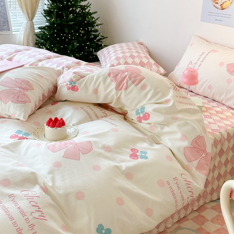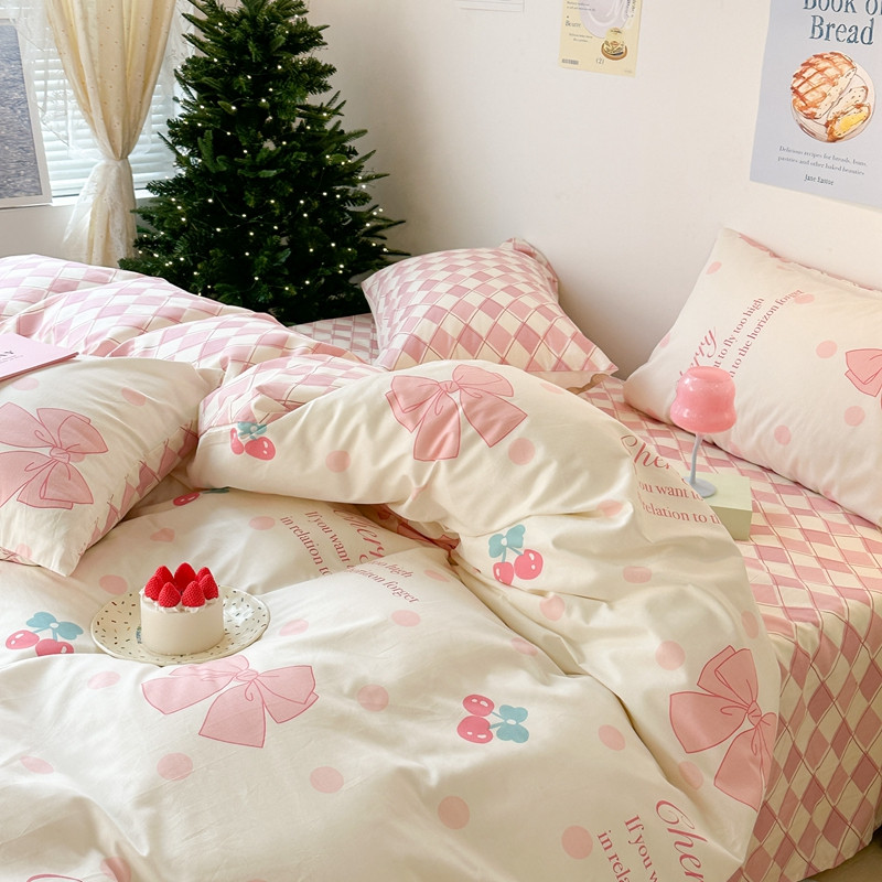 昔可家纺 2023新款圣诞系列全棉四件套 樱桃蝴蝶结