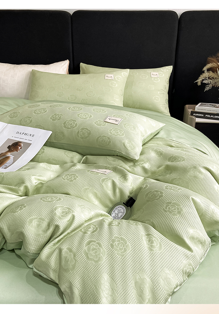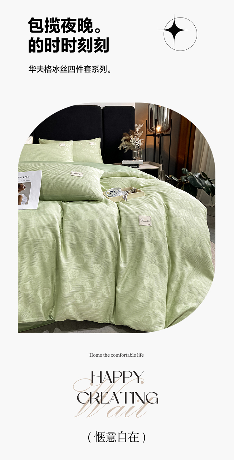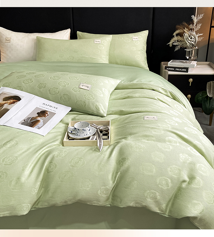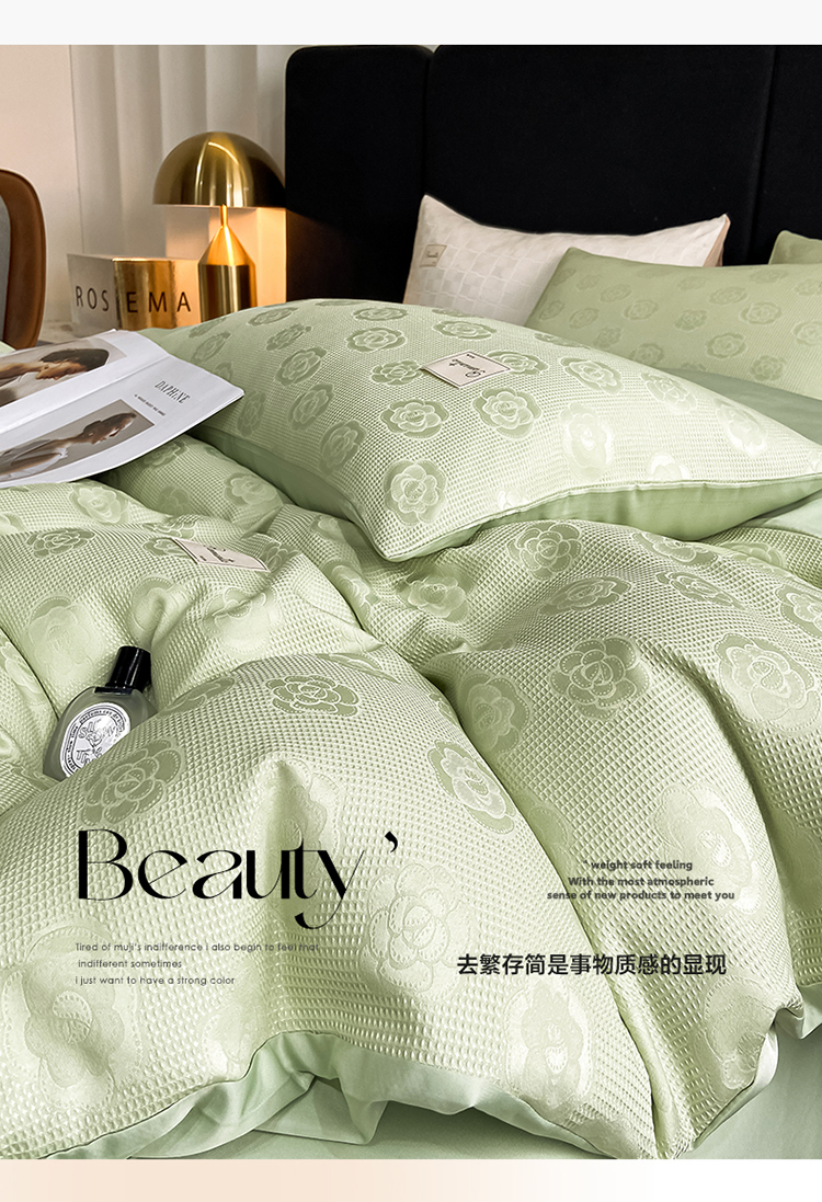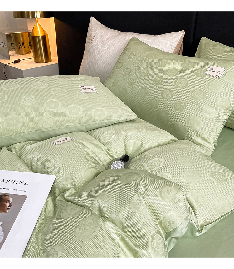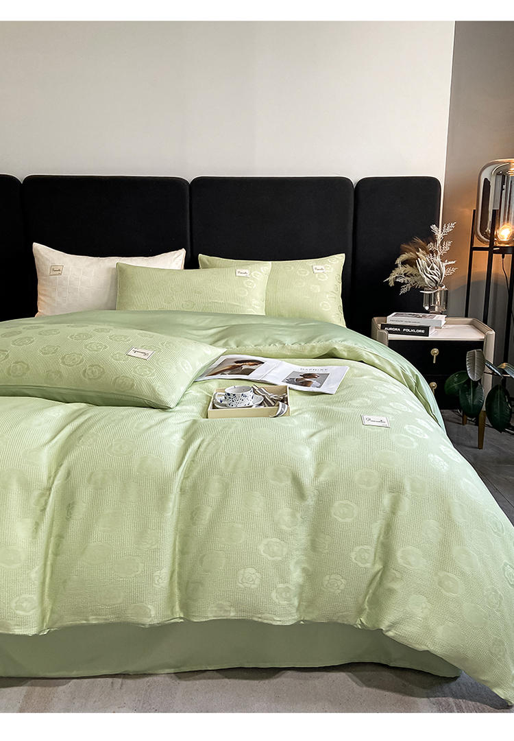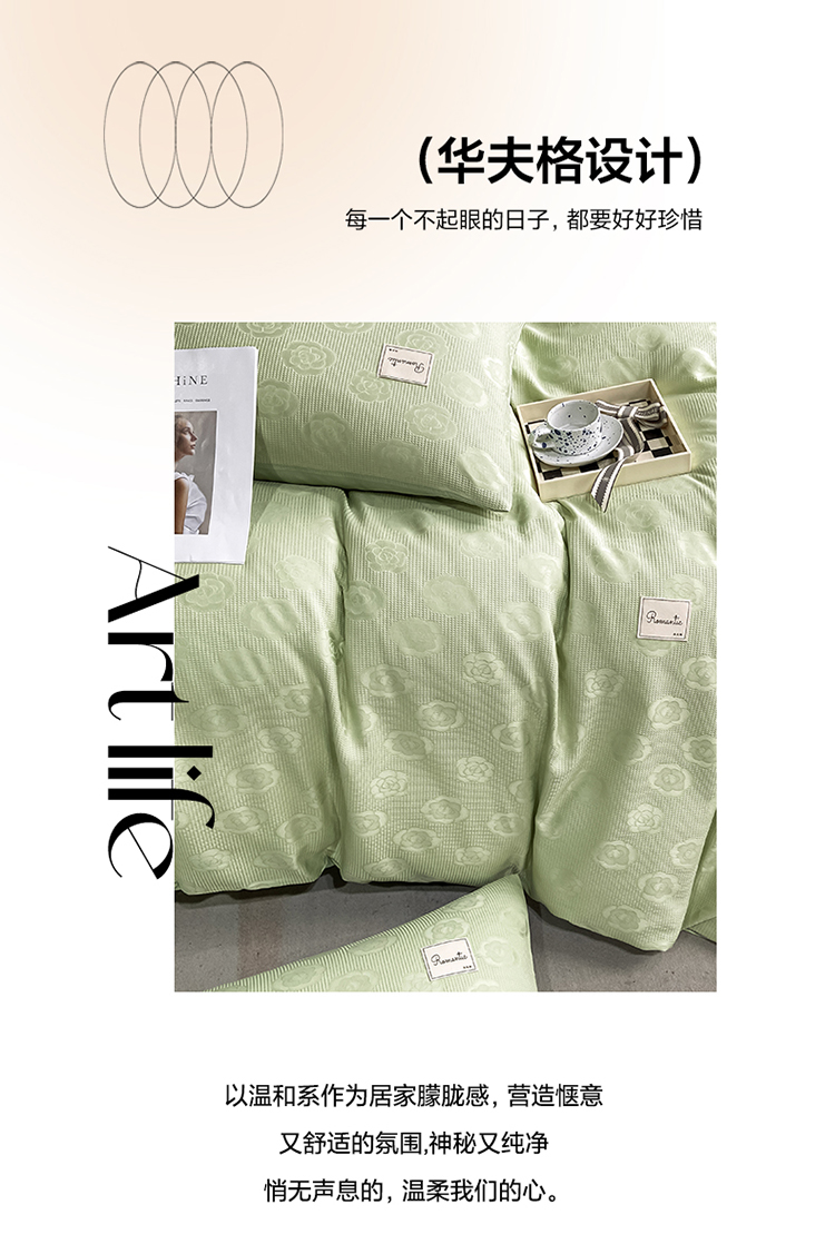 金麦 2023新款冰丝华夫格四件套系列 华夫格茶花嫩绿