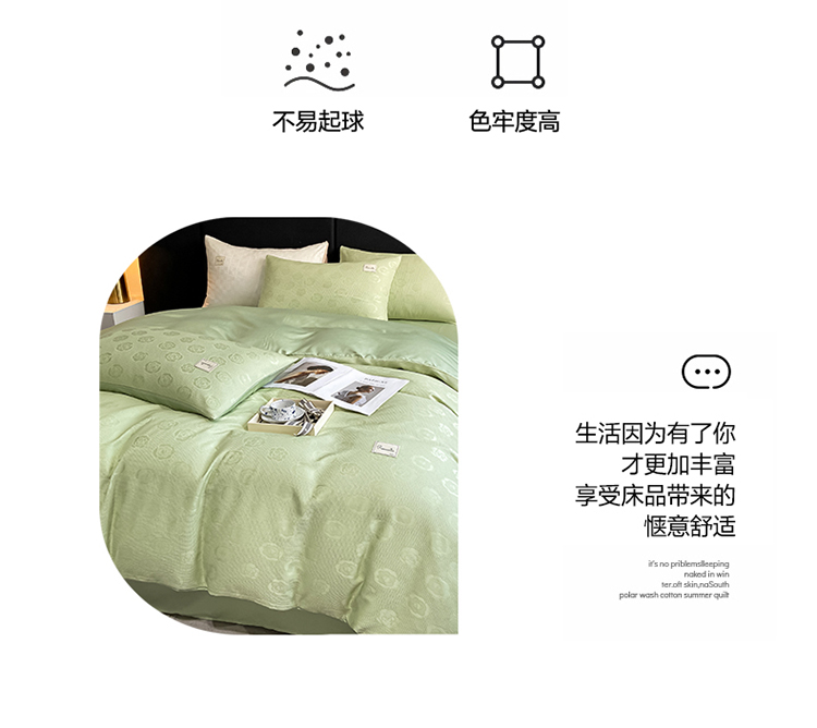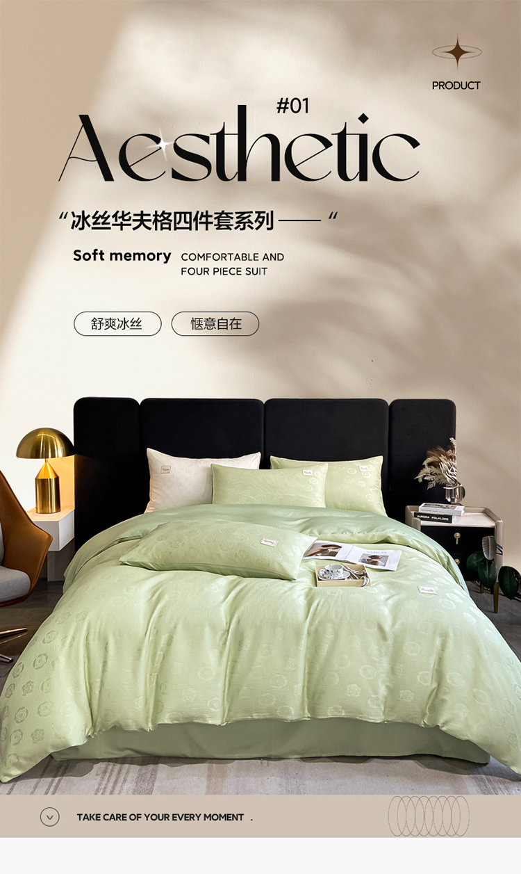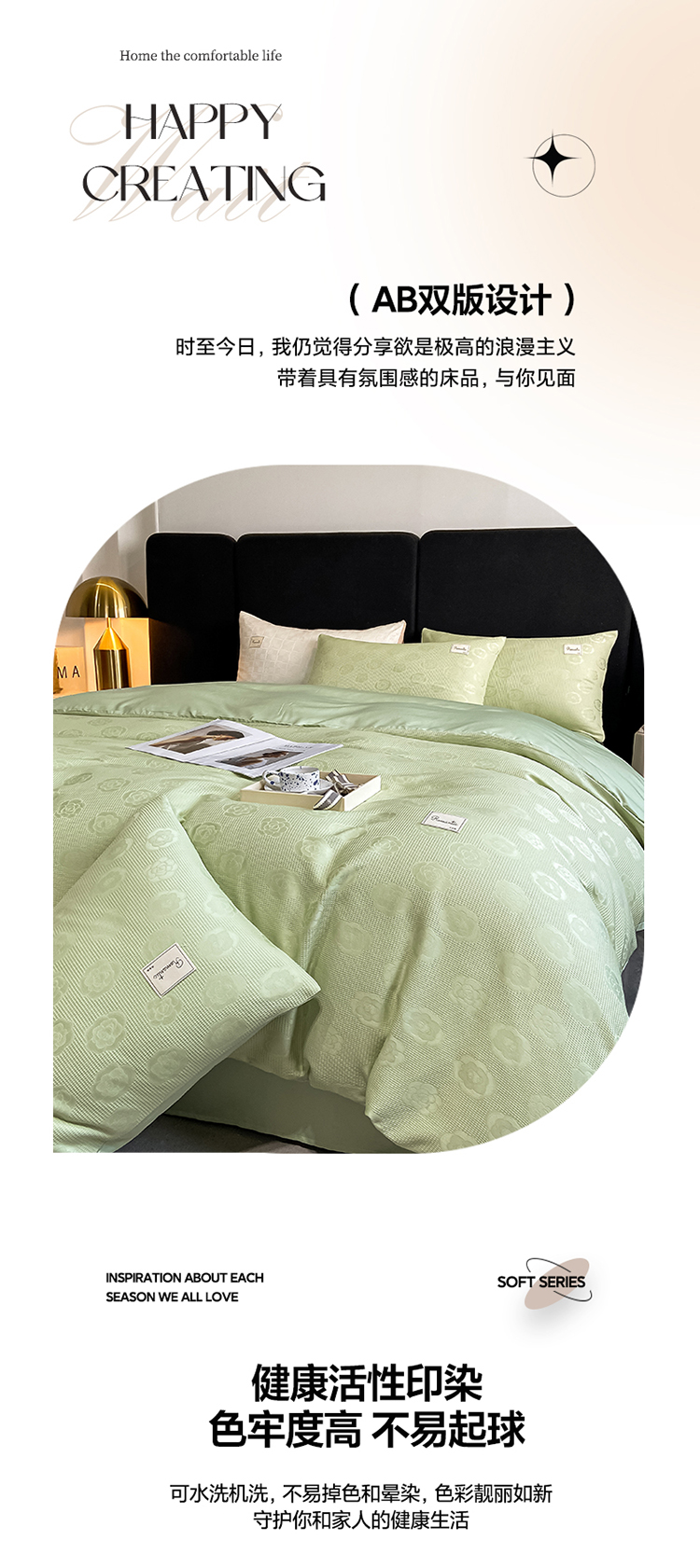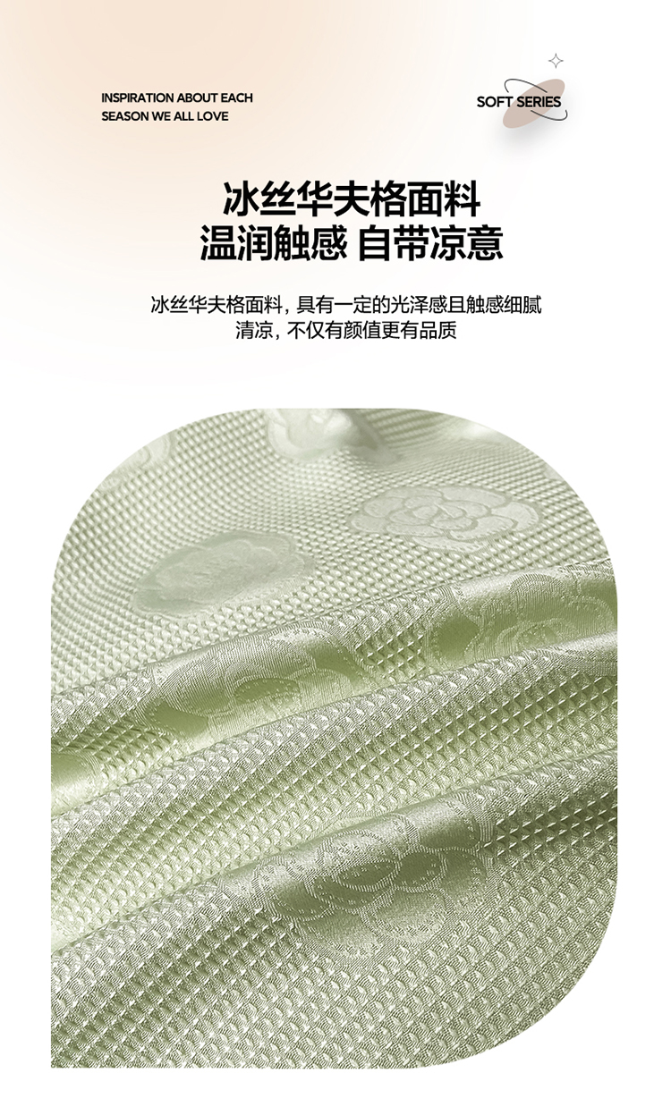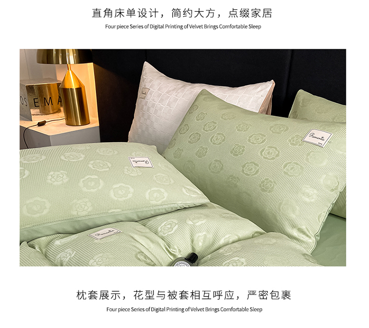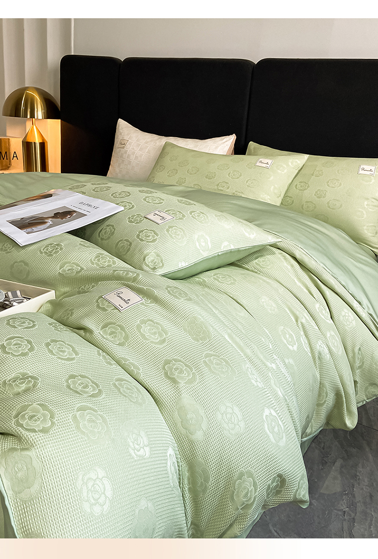 金麦 2023新款冰丝华夫格四件套系列 华夫格茶花嫩绿