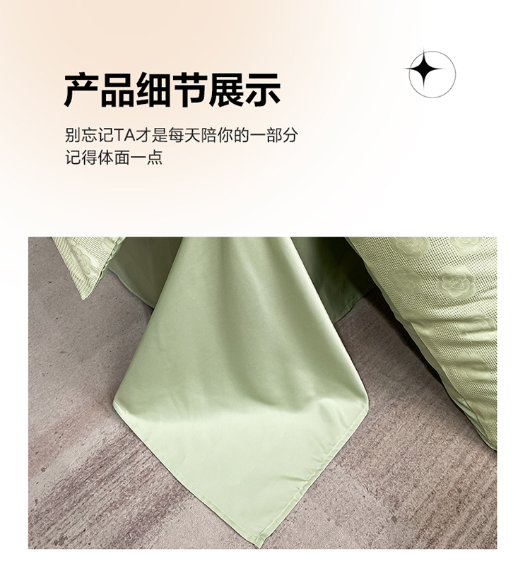 商品名称:金麦 2023新款冰丝华夫格四件套系列 华夫格茶花嫩绿