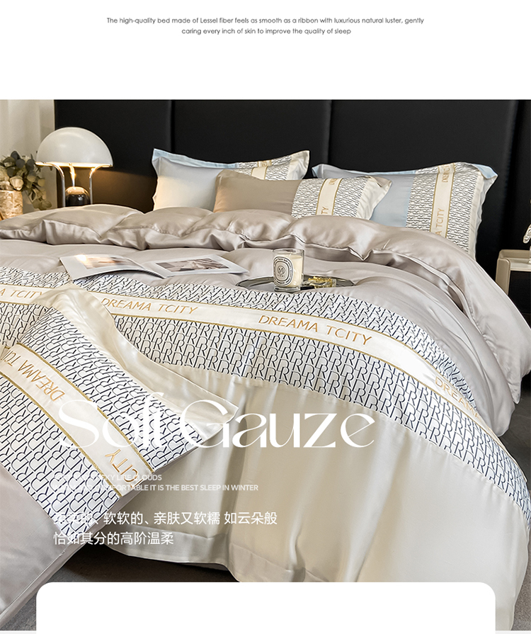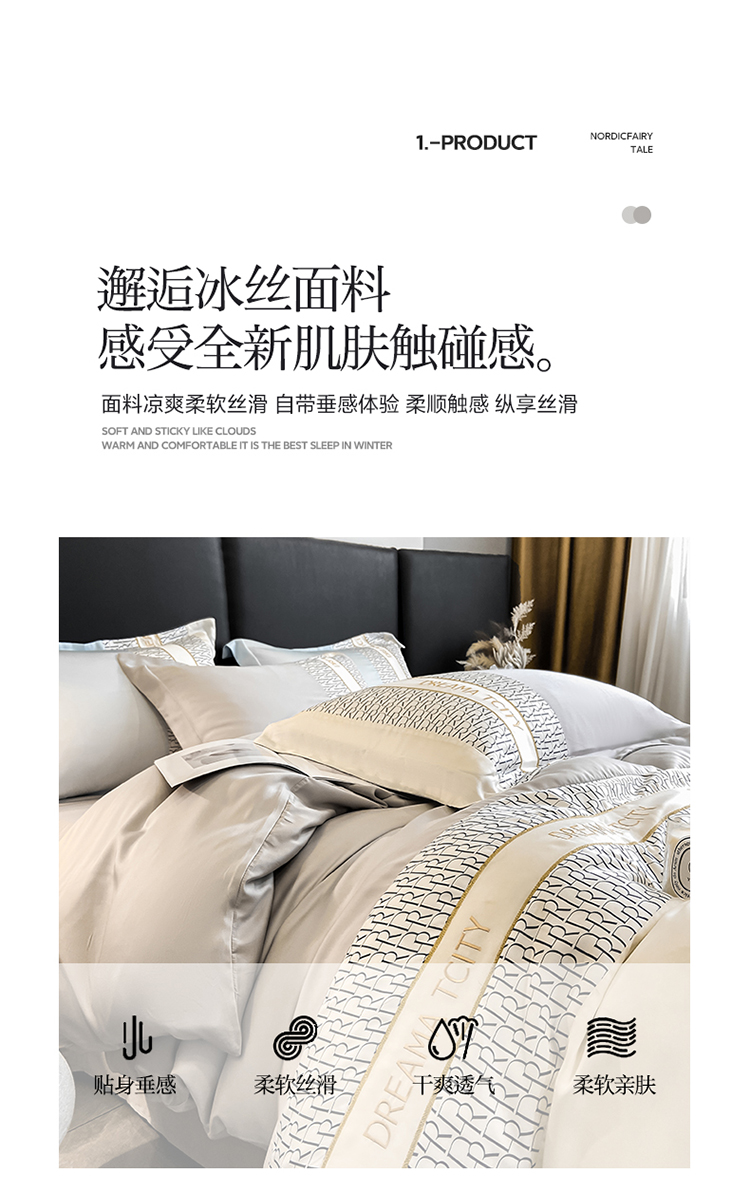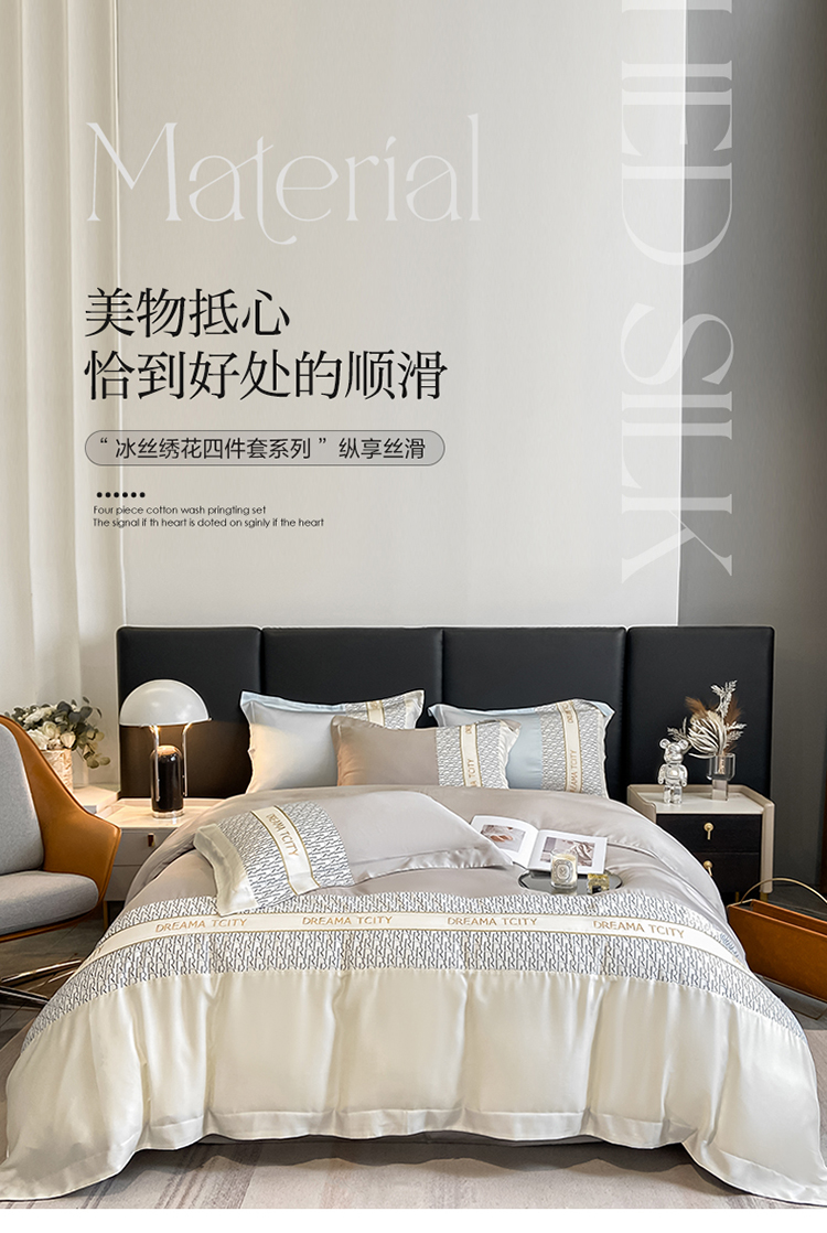 商品名称:金麦家纺 2023新款冰丝英格四件套系列 英格-浅灰