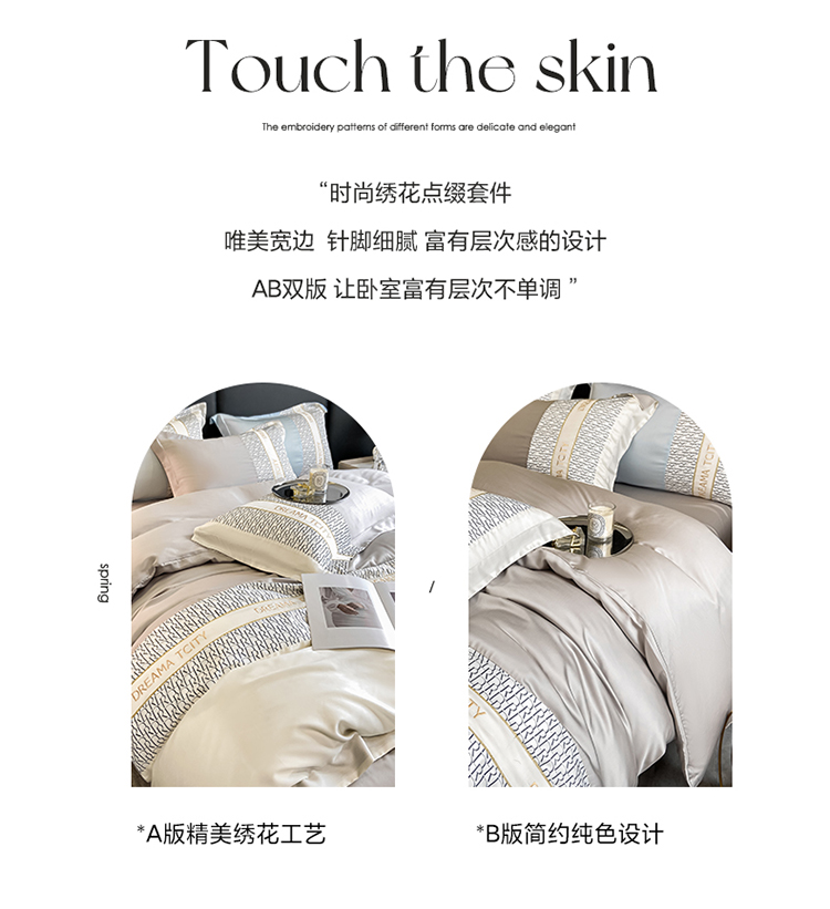 (总)金麦家纺 2025新款冰丝绣花四件套-心愿系列,心愿粉色,心愿燕麦奶,心愿天空蓝,心愿淡雅绿,心愿浅灰