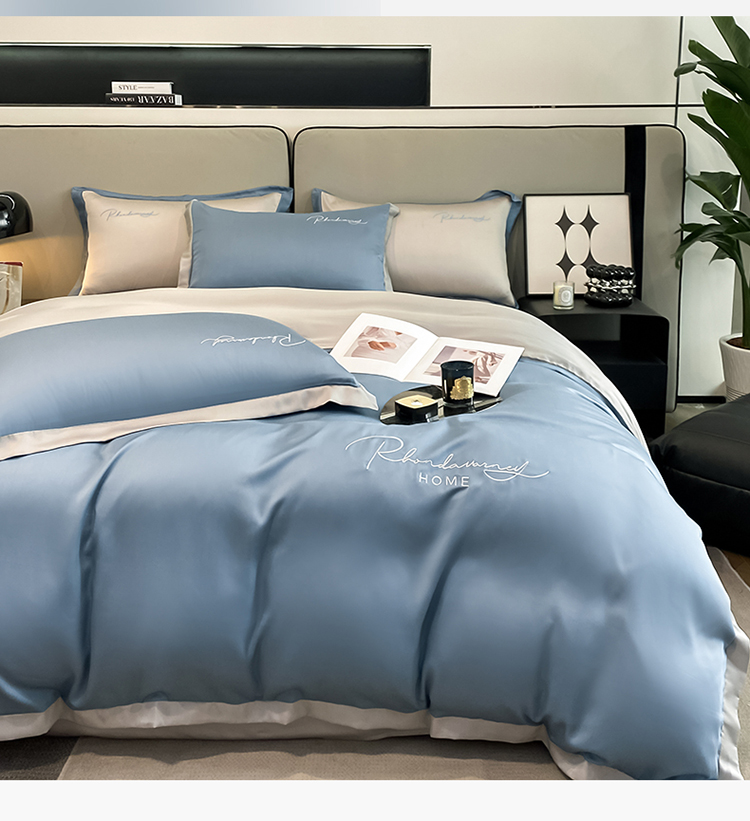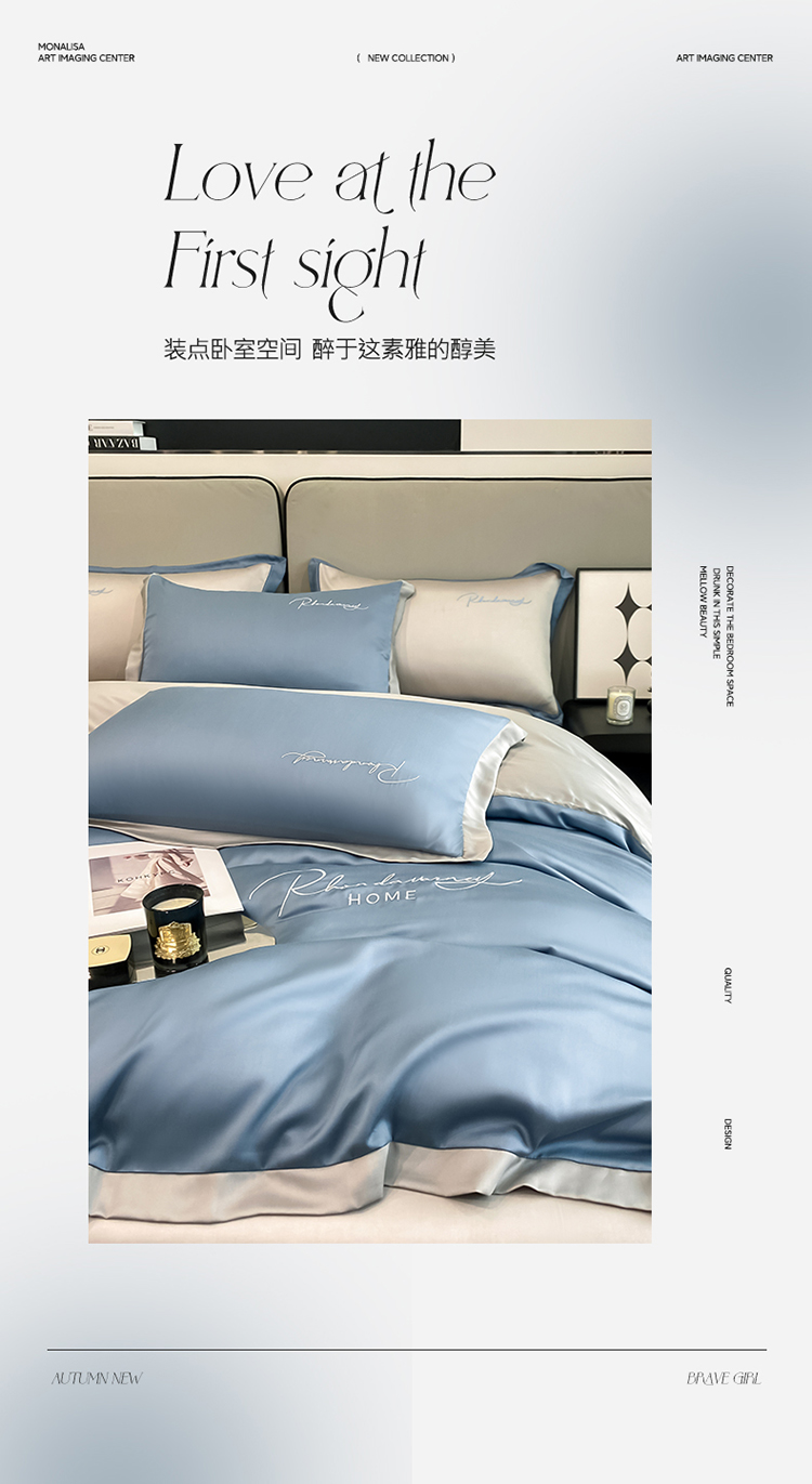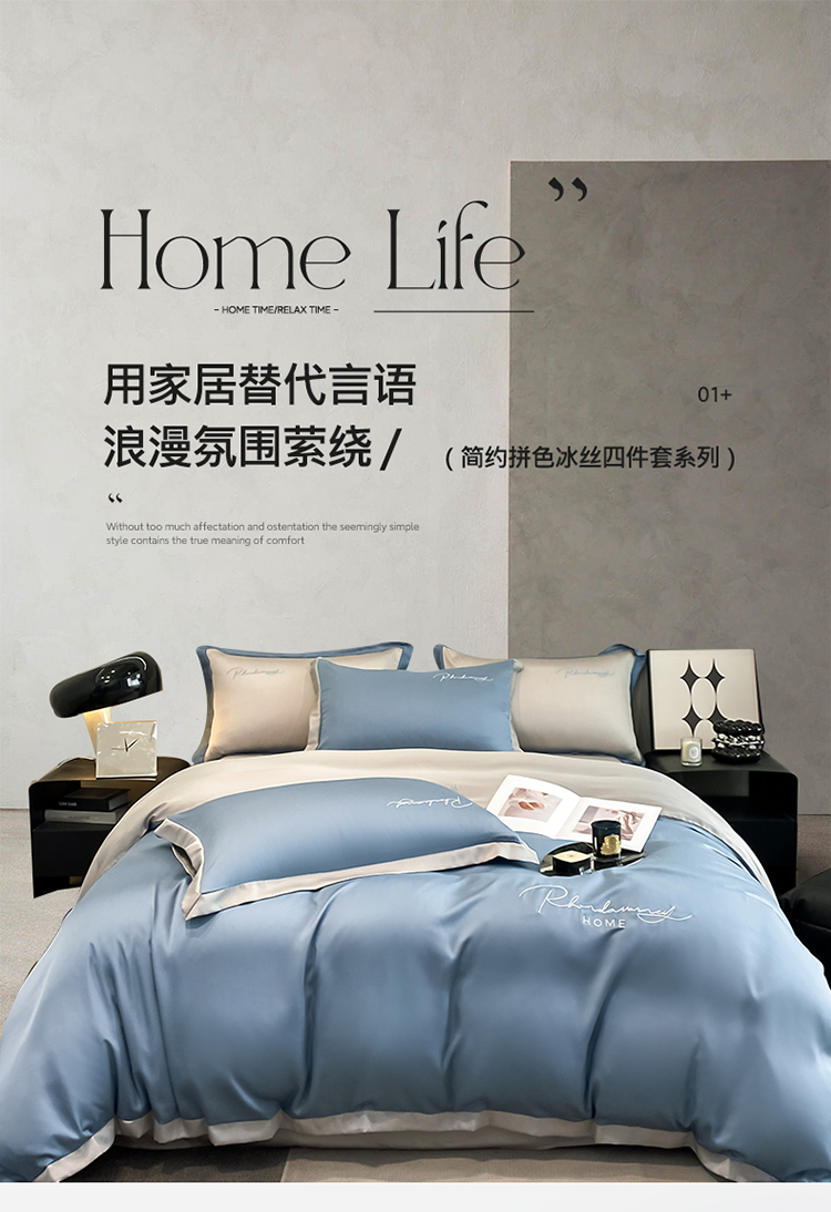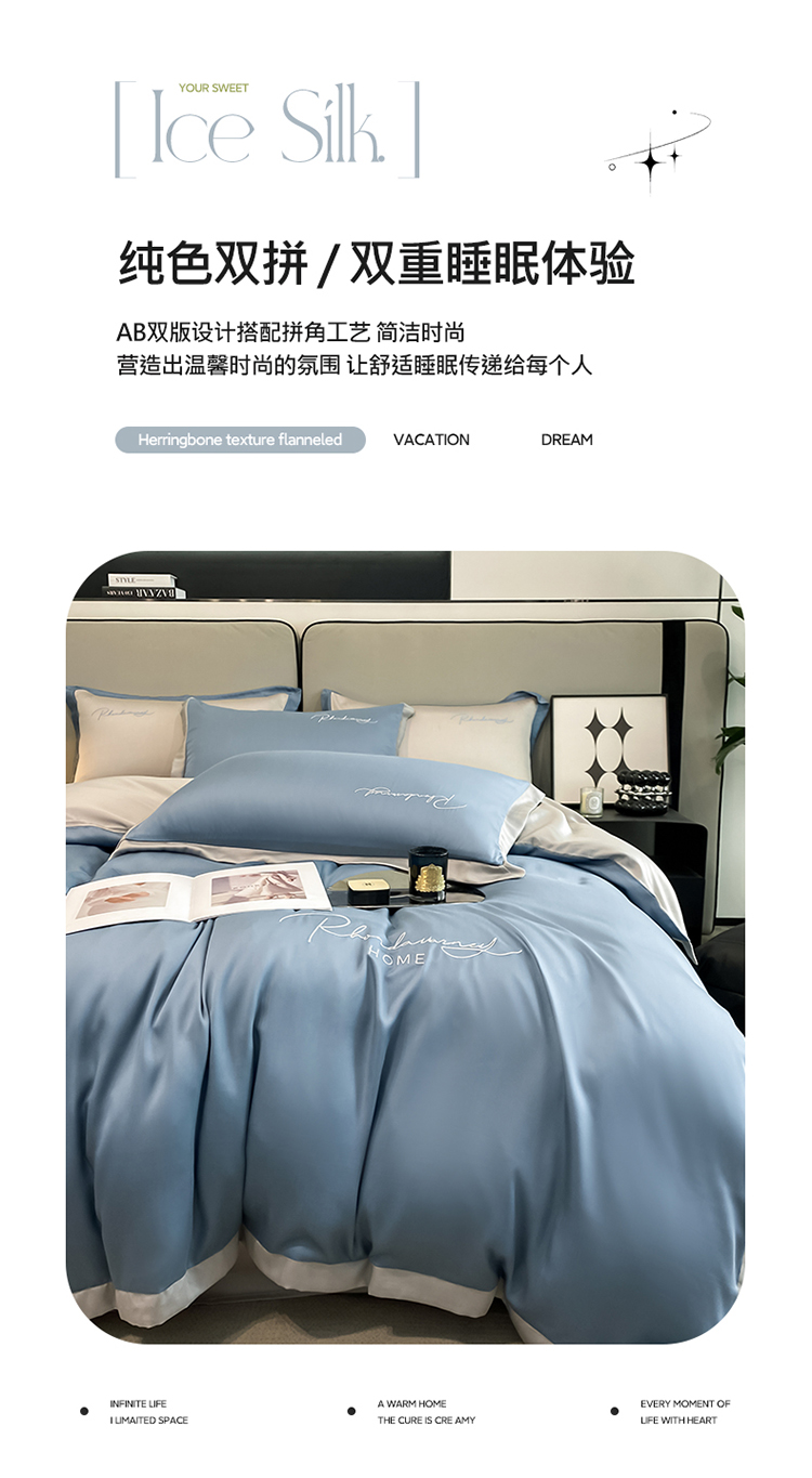 金麦家纺 2023新款冰丝小拼角四件套系列 小拼角蓝