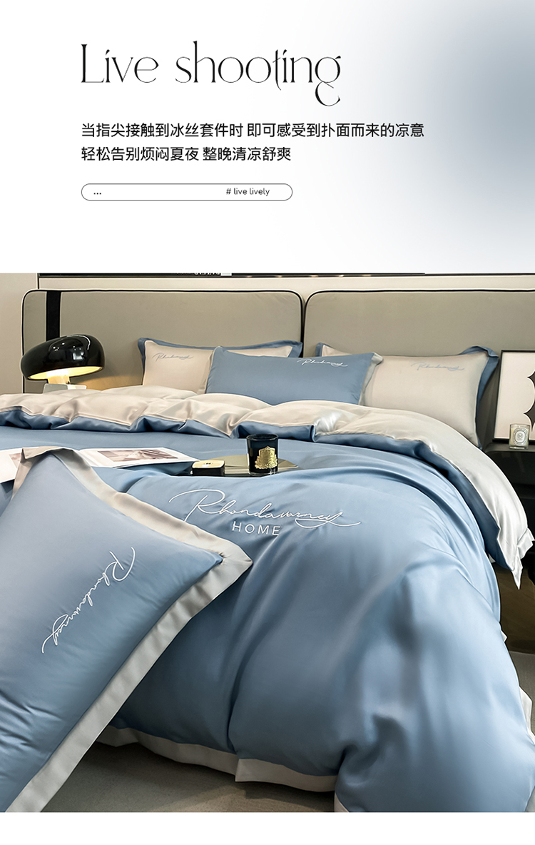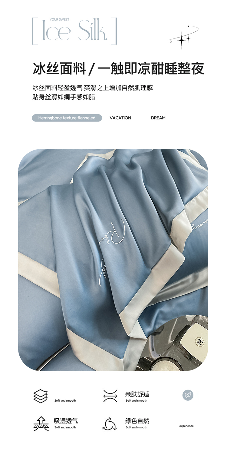 (总)金麦家纺 2025新款冰丝绣花四件套-心愿系列,心愿粉色,心愿燕麦奶,心愿天空蓝,心愿淡雅绿,心愿浅灰
