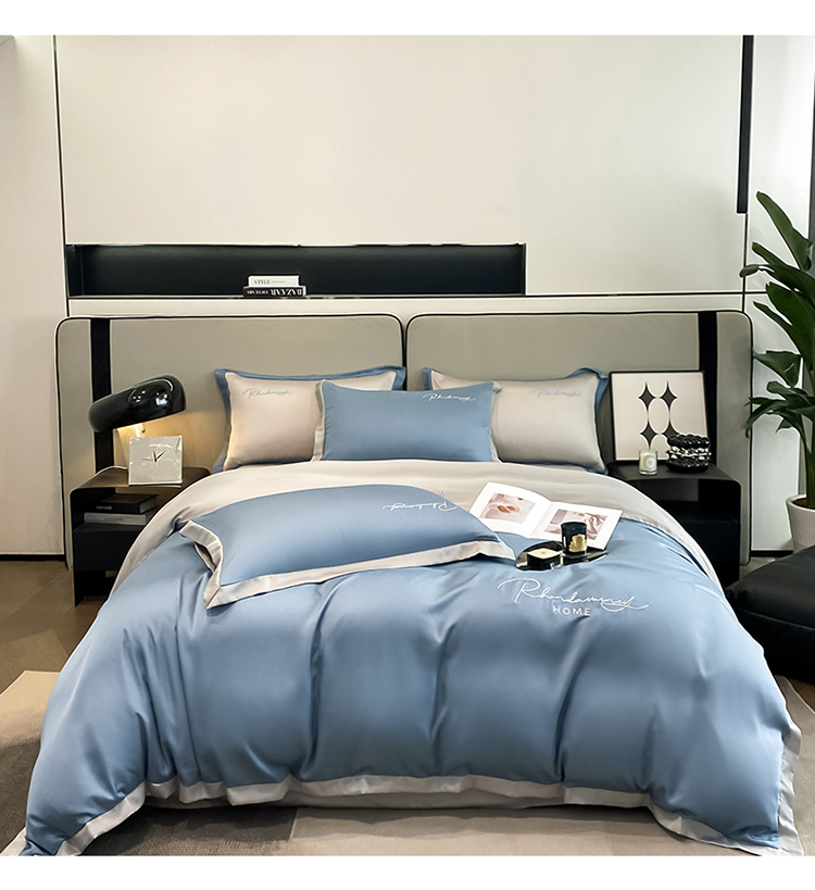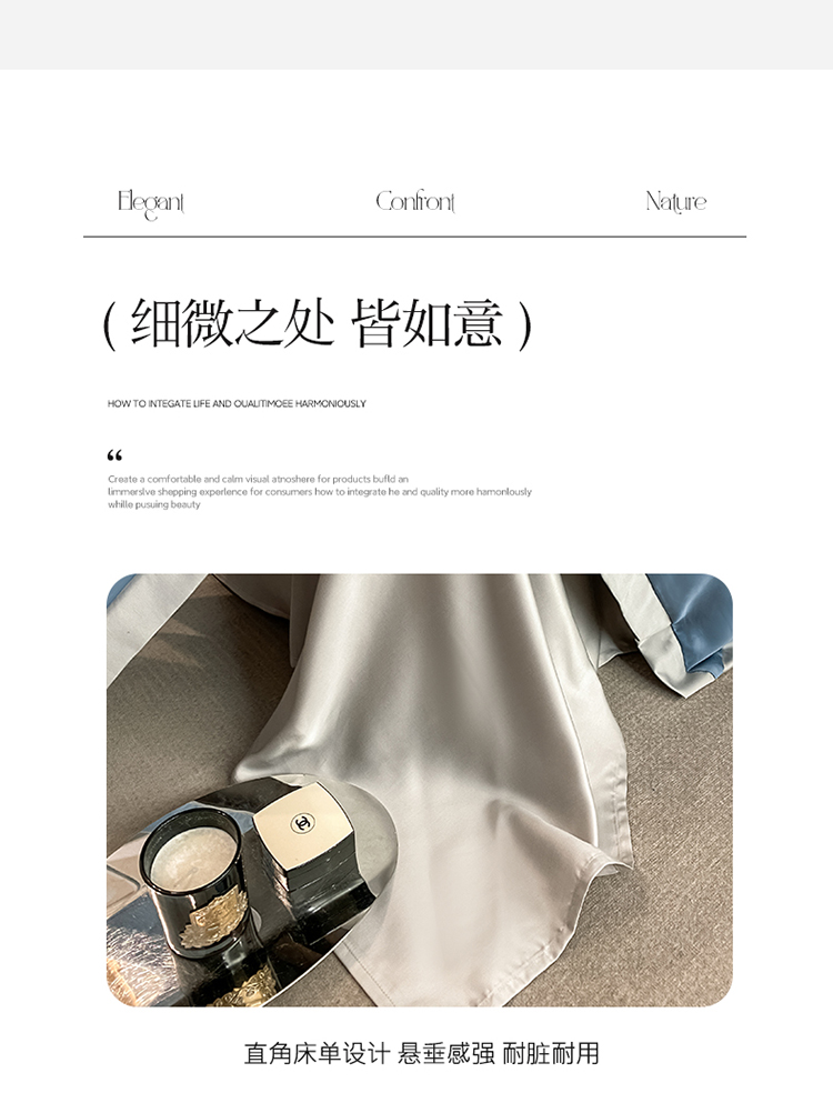商品名称:金麦家纺 2023新款冰丝小拼角四件套系列 小拼角蓝