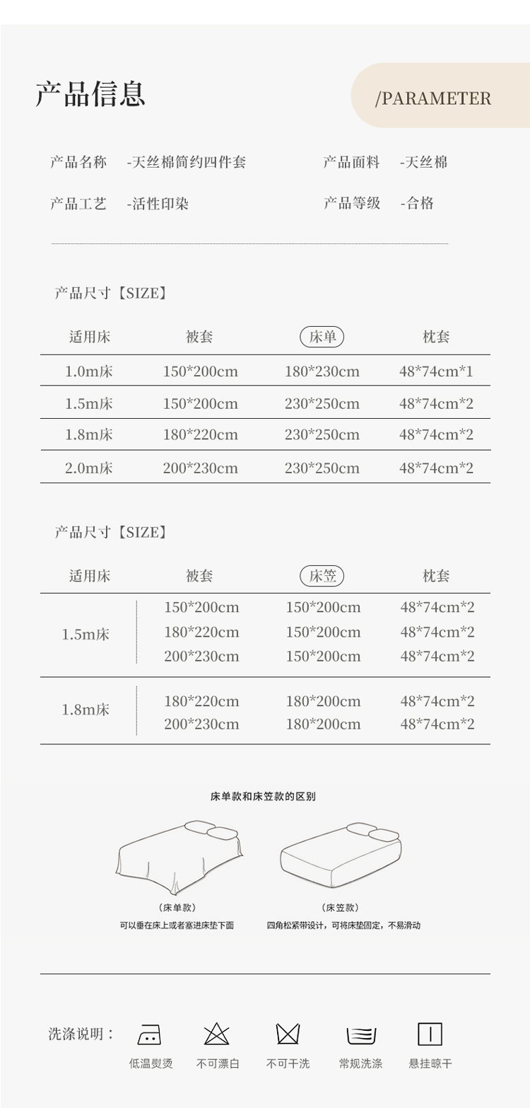 1.5m床笠款四件套(180*220cm) | ¥59.00 |