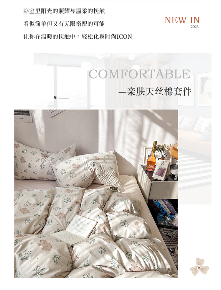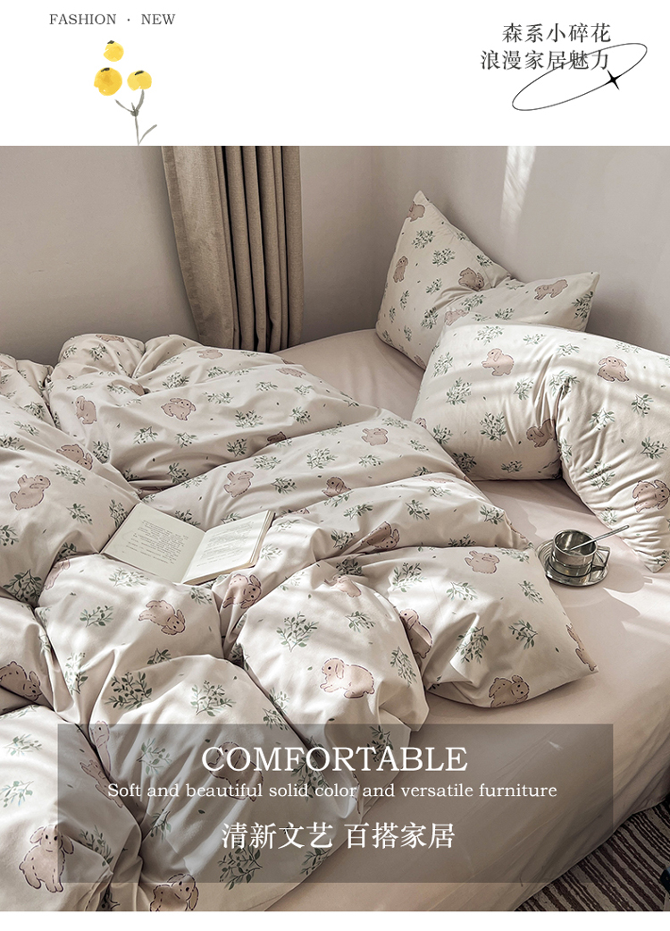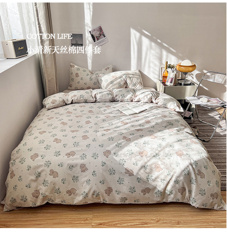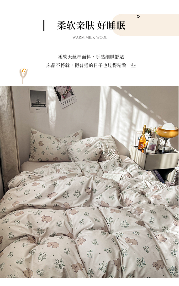 当前位置: 91家纺网 > 商品网购 > 床品套件 > 四件套 > 化纤普通四件套 > 宏源2023新款天丝棉花卉四件套 兔咖
