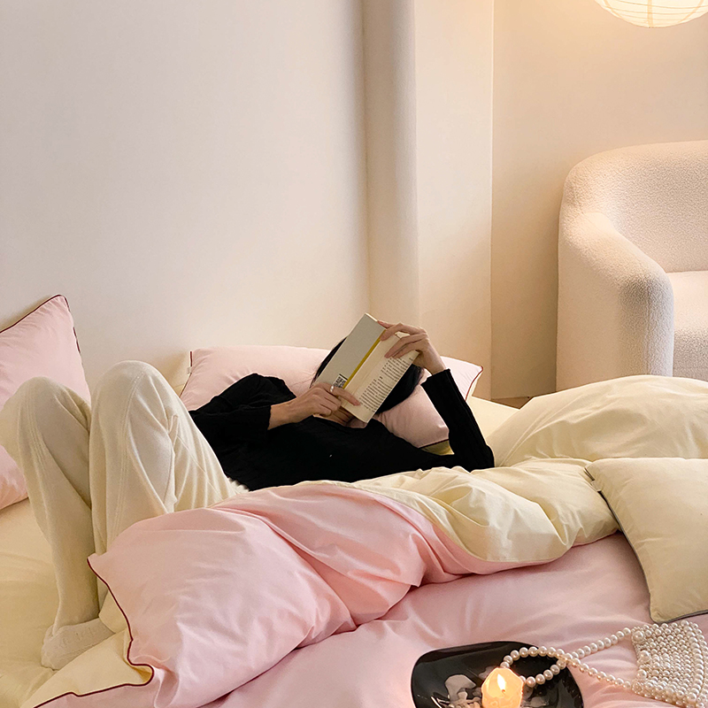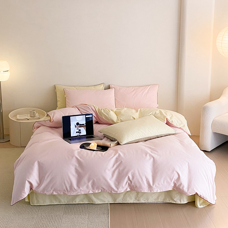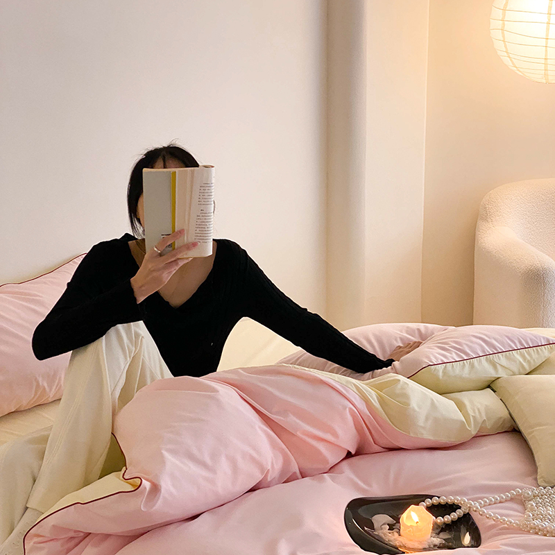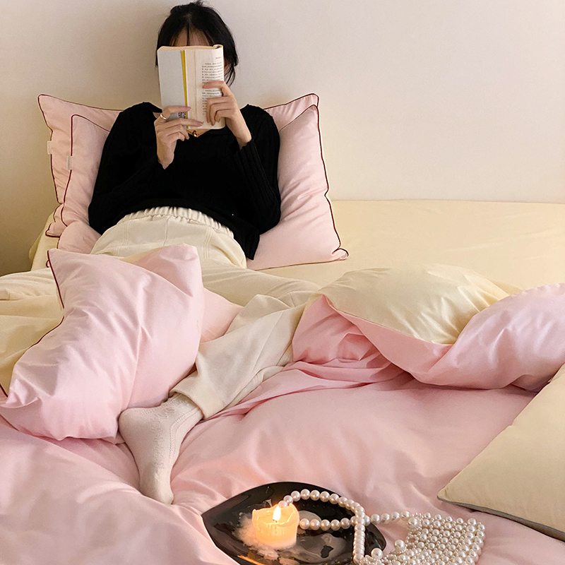 当前位置: 91家纺网 > 商品网购 > 床品套件 > 四件套 > 全棉普通四件套 > 时年 2023新款40支全棉水洗棉嵌绳款四件套--拍法二 樱花粉