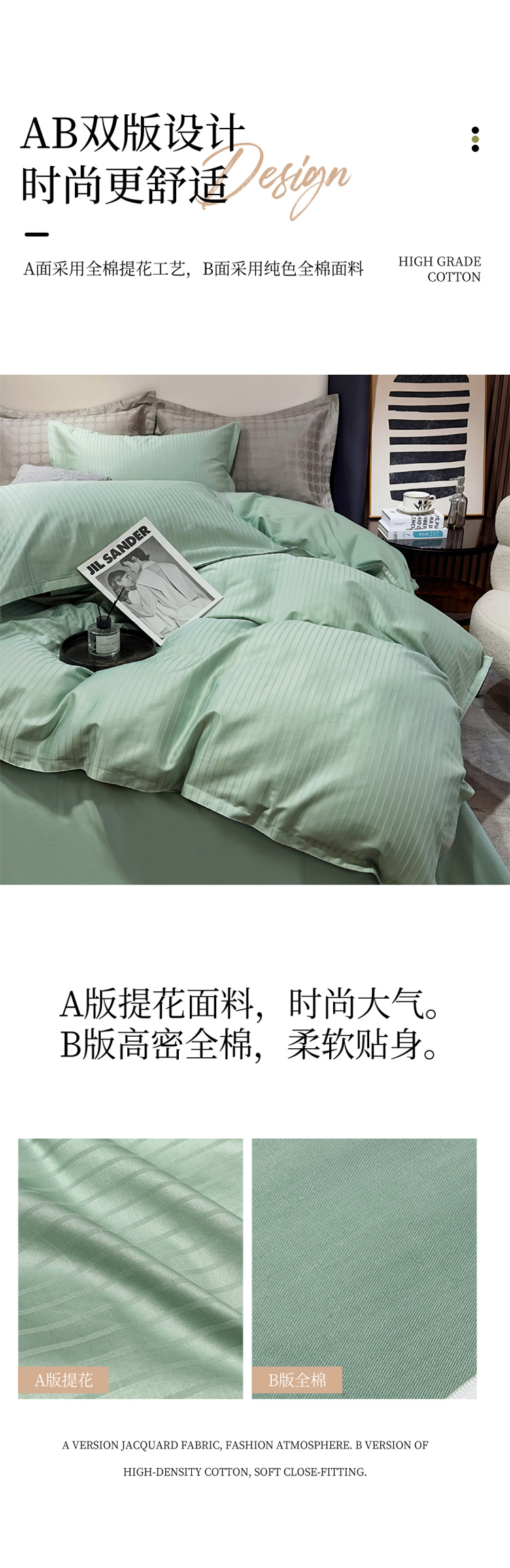尚品本色 2023新款全棉高支提花飞边款四件套 一线条(浅绿)