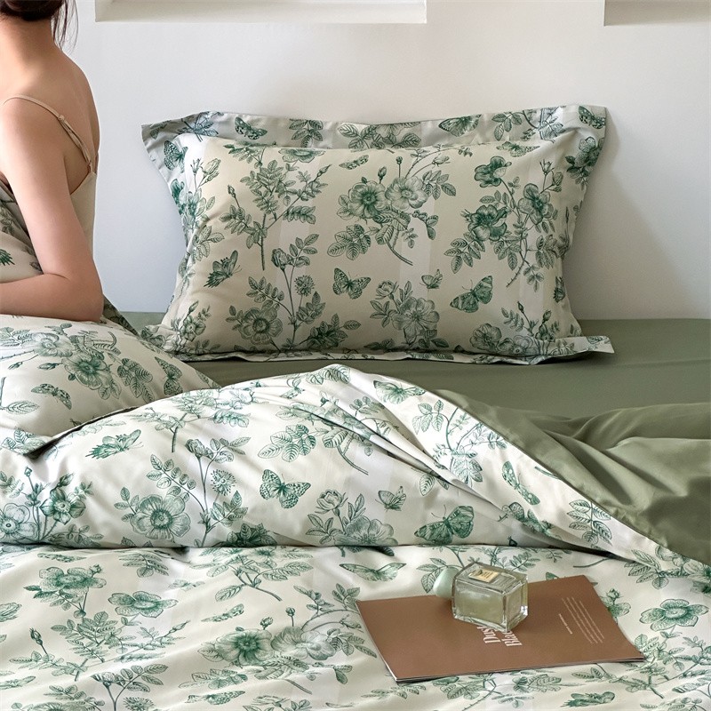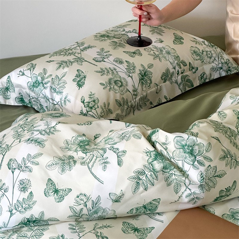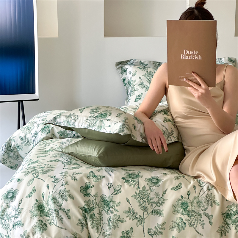 赫帛 2023款120s缎纹数码印花四件套-繁花 繁花-绿