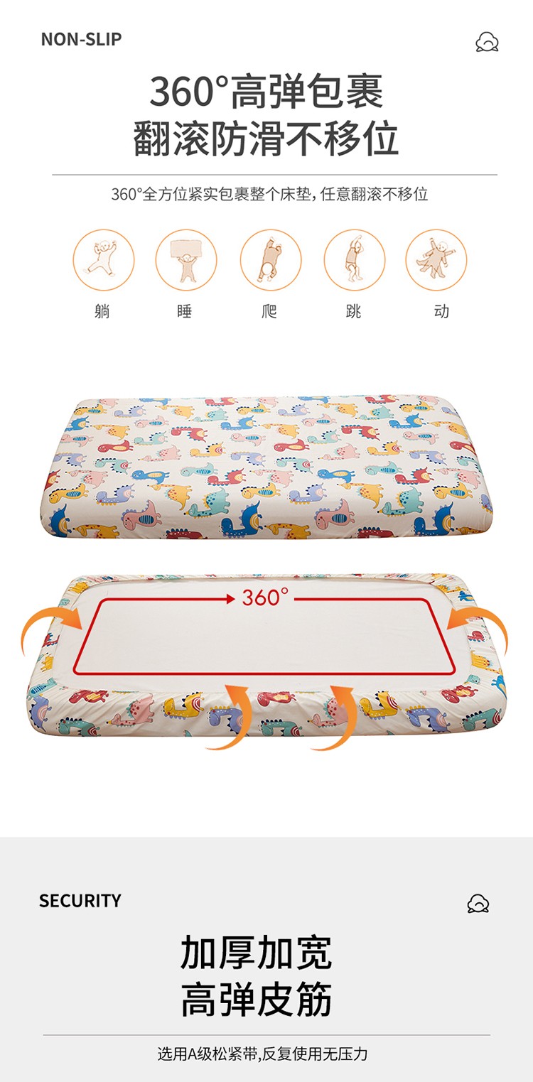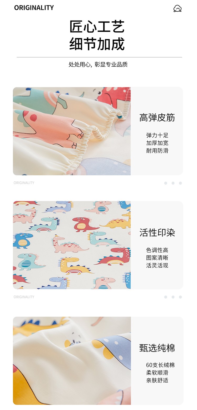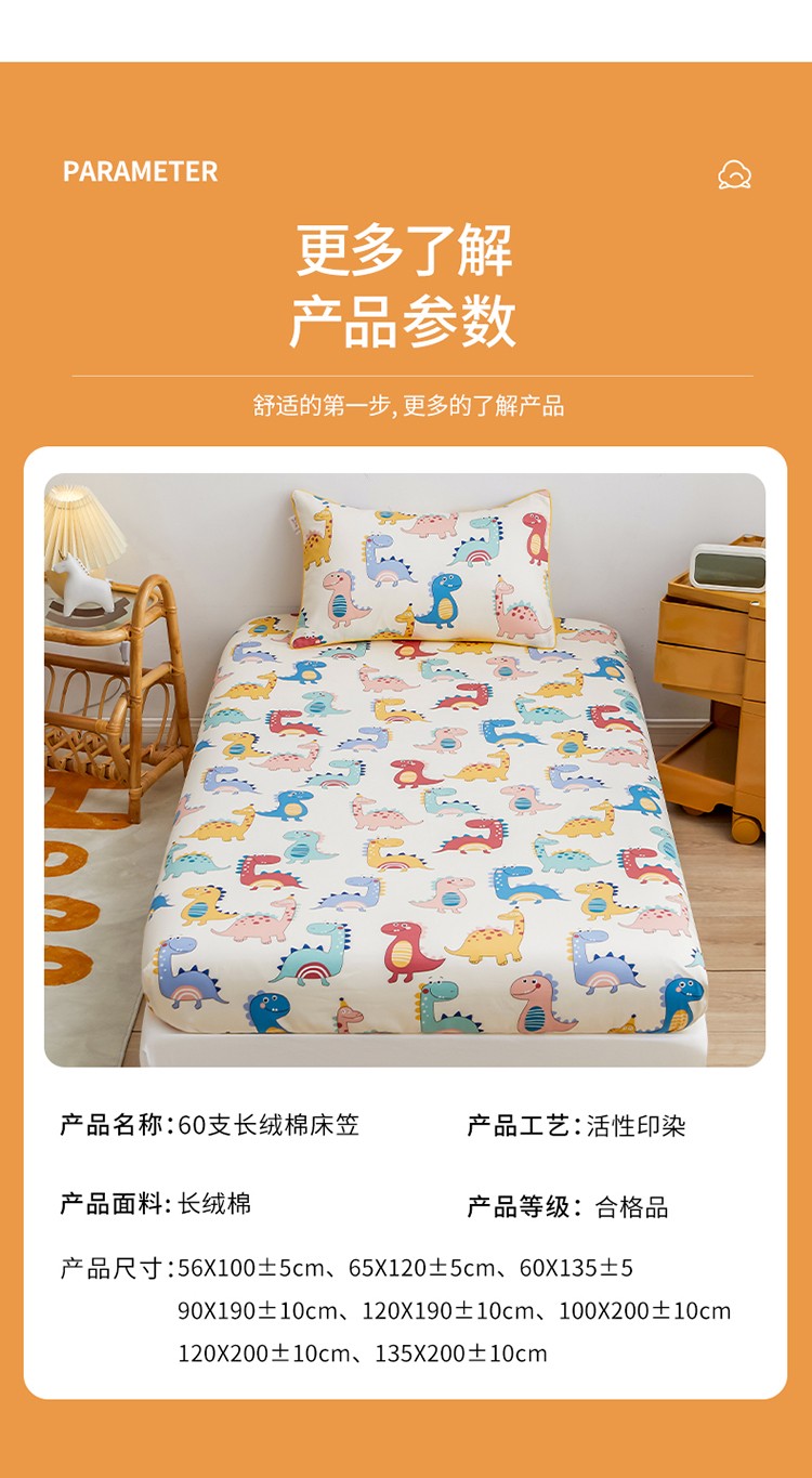 商品名称:ds生活馆 2025新款幼儿园学生60支贡缎长绒棉纯棉单床笠 快乐恐龙