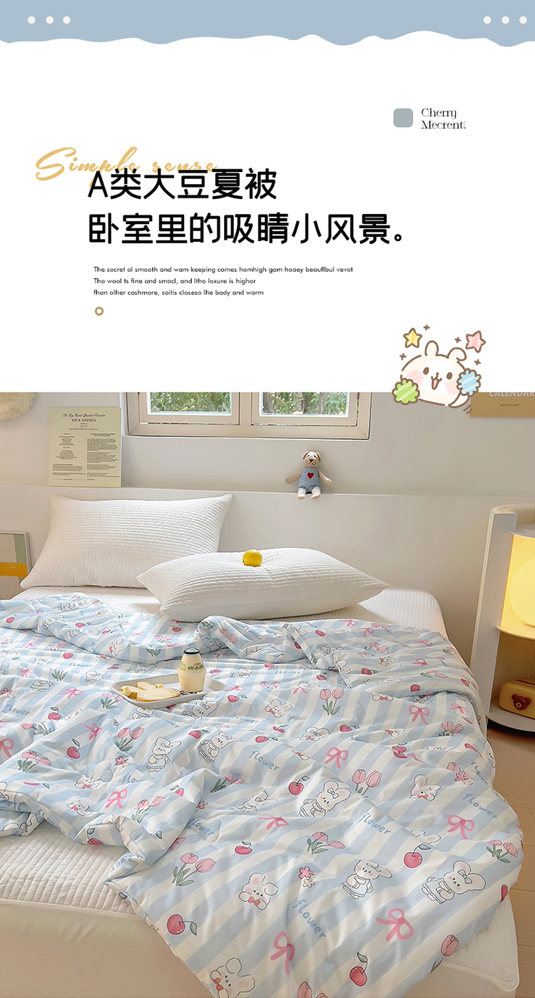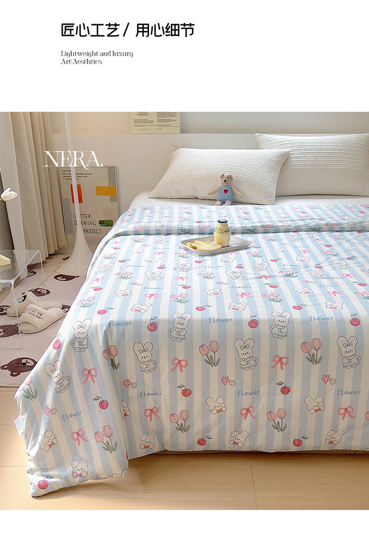 商品名称:木堇家居 2023新款针织夏被A类大豆针织棉夏被 郁金香小兔