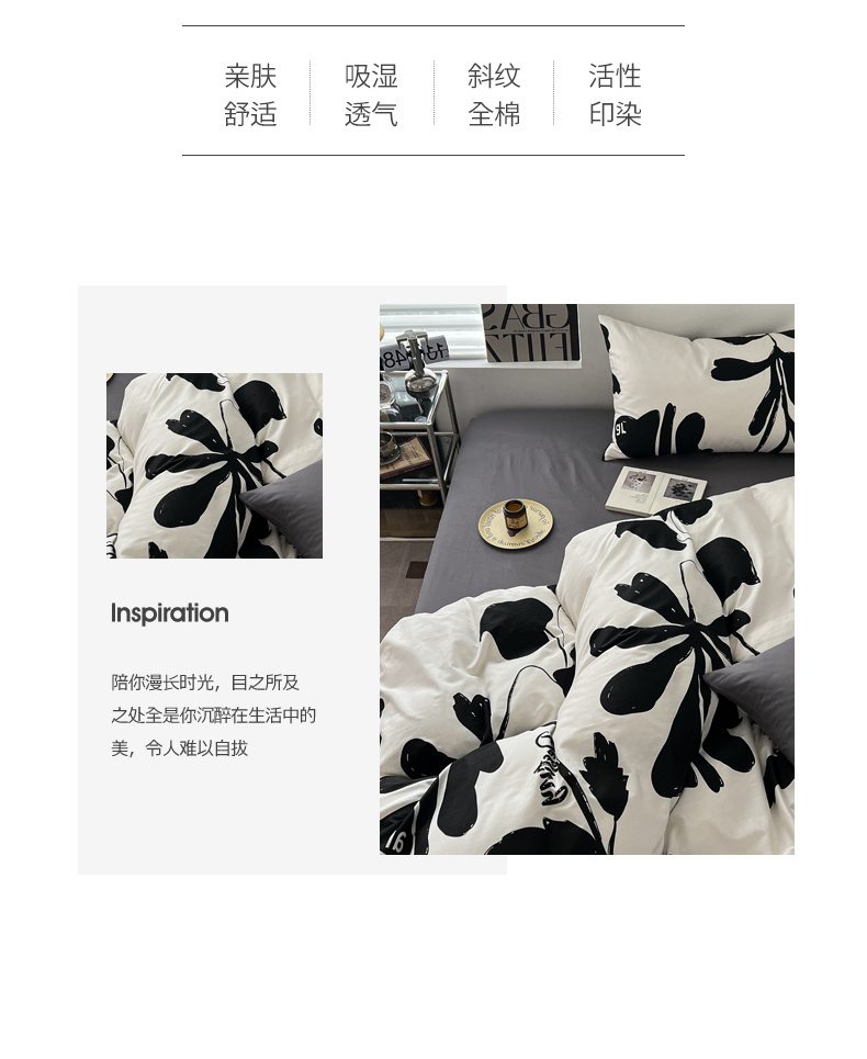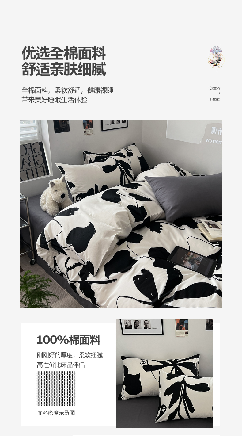 商品名称:三朵 2023年新款春夏纯棉13070黑白系列 月夜桂花