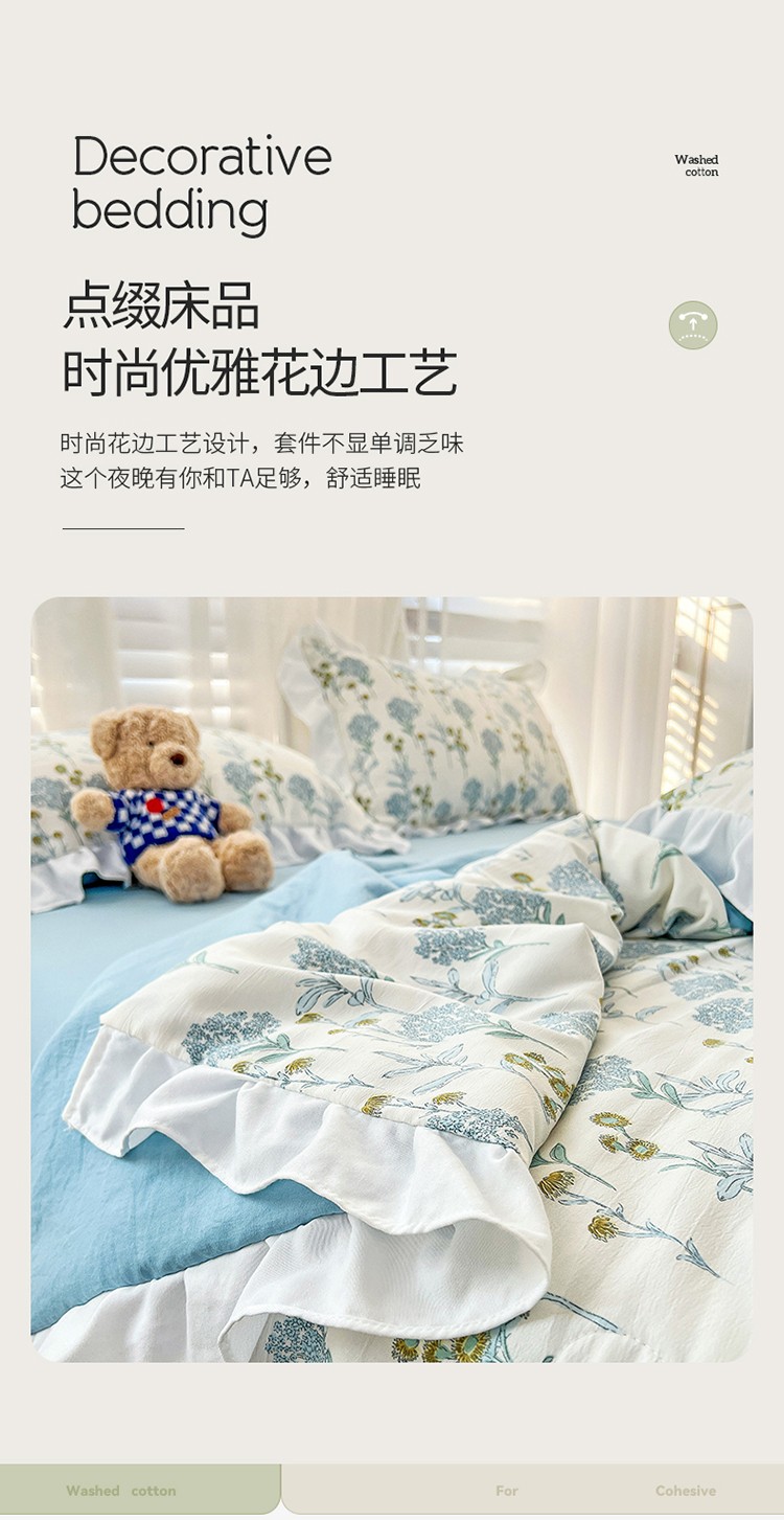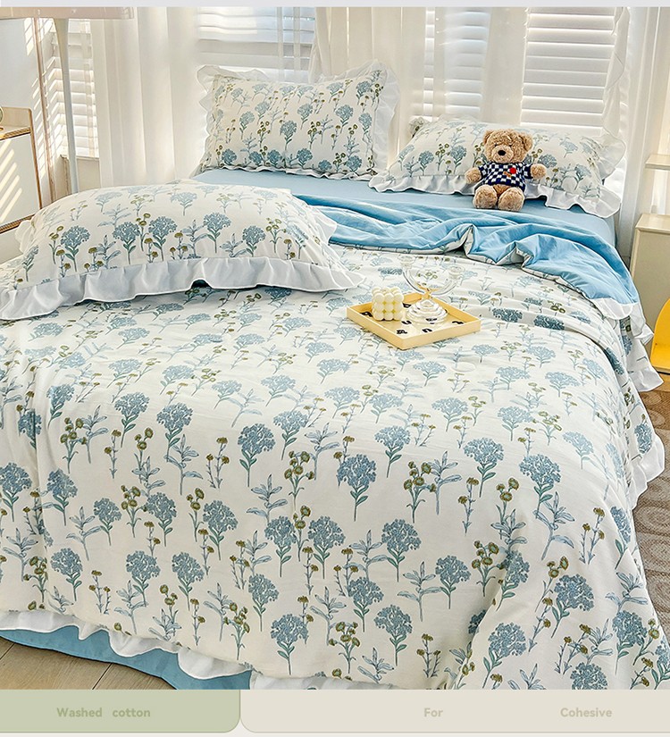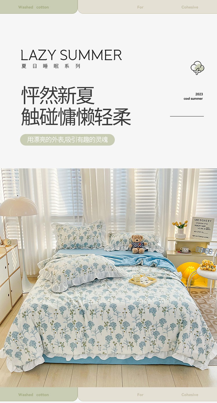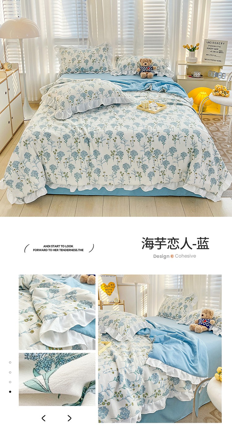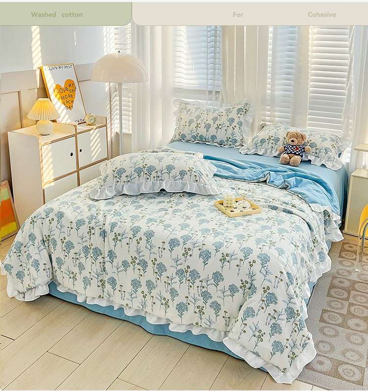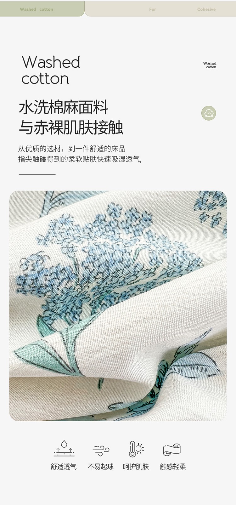澳梵 小清新水洗棉麻夏被四件套 海芋恋人-蓝