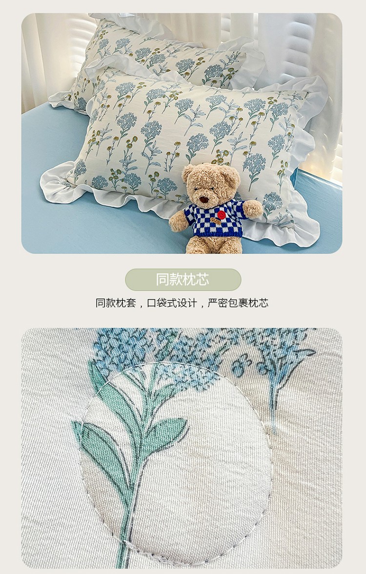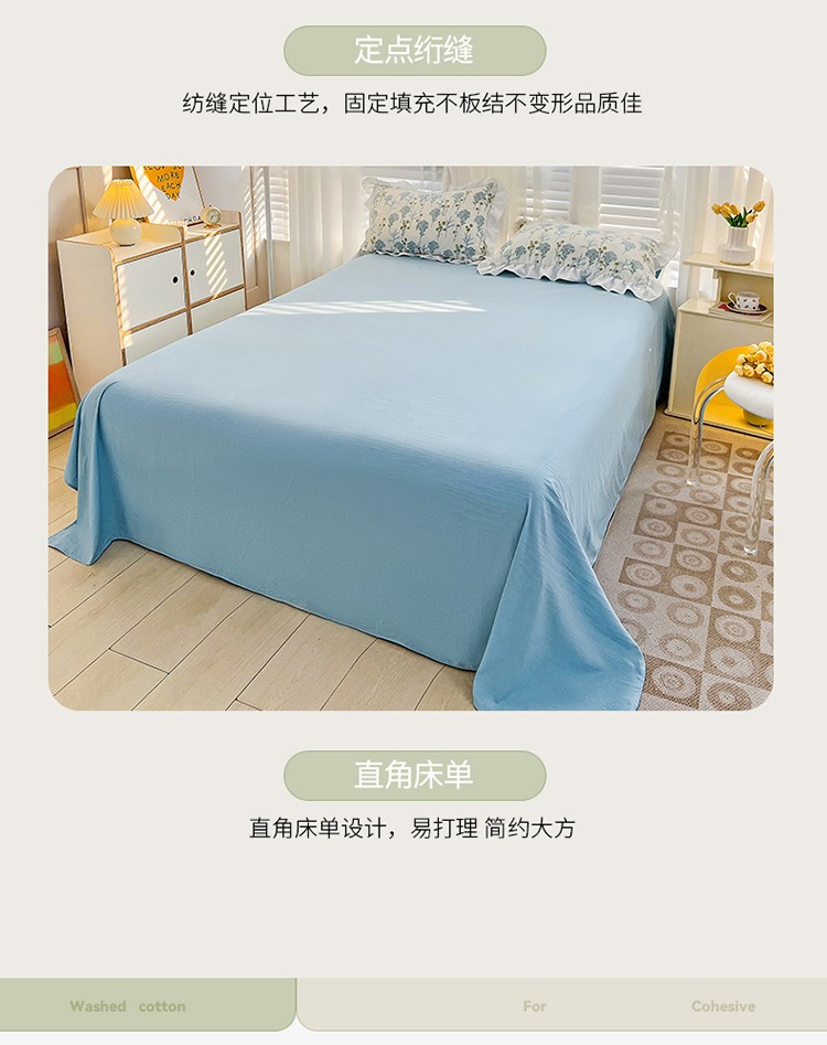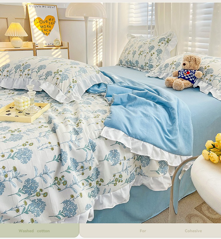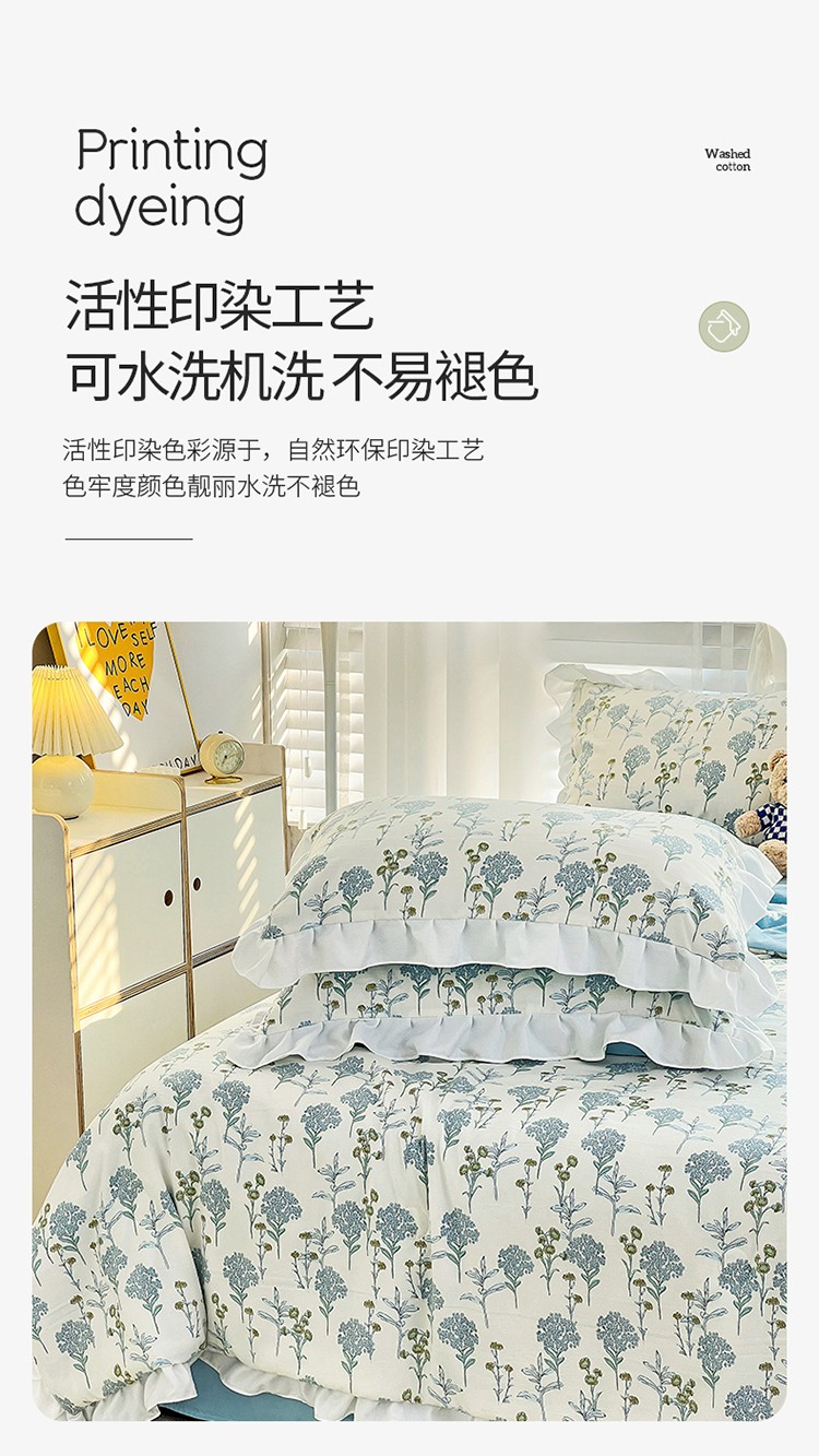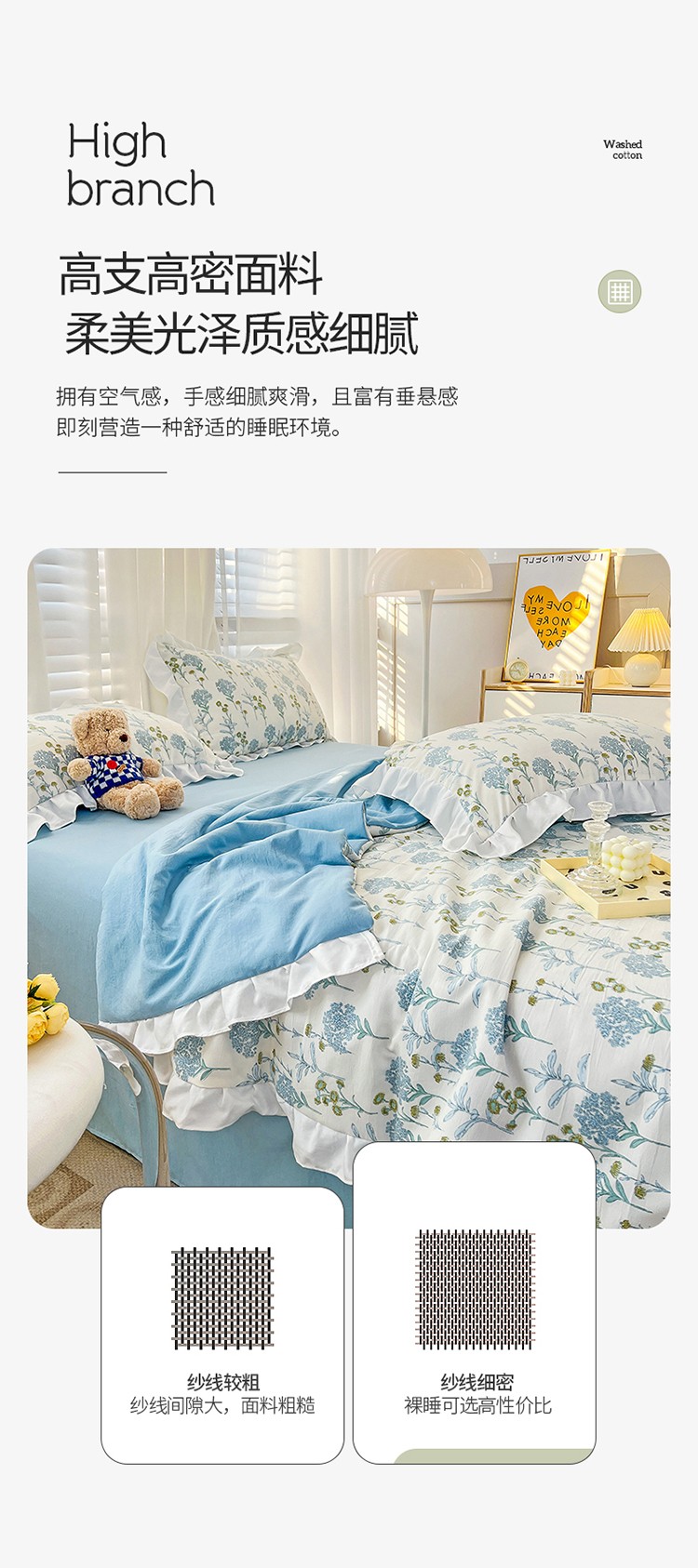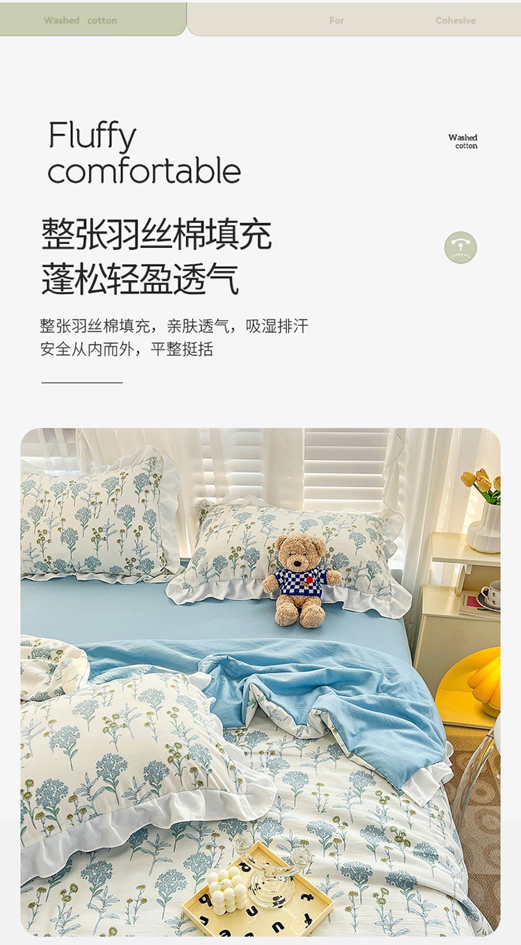 澳梵 小清新水洗棉麻夏被四件套 海芋恋人-蓝