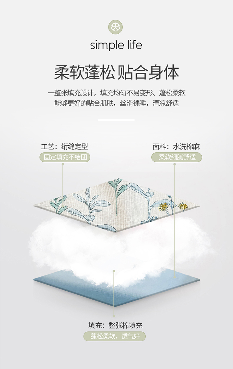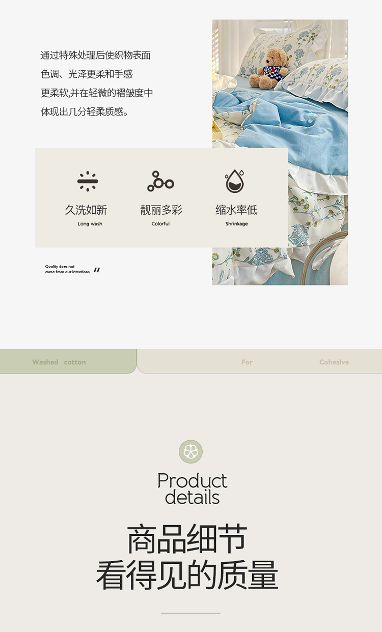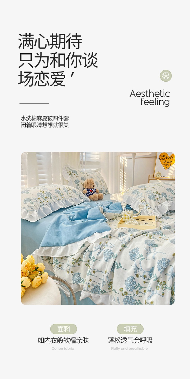 商品名称:澳梵 小清新水洗棉麻夏被四件套 海芋恋人-蓝