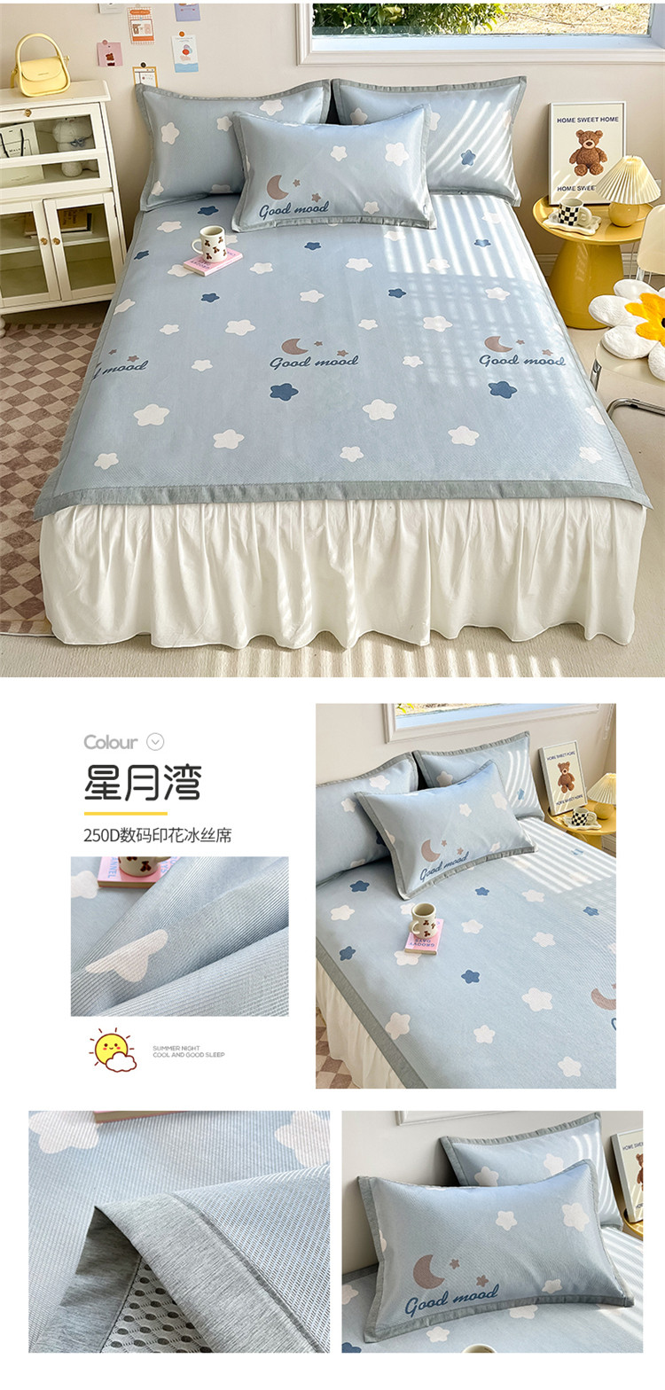 商品名称:懒猫 2024新款250D宽边圆网数码印花冰丝席 星月湾