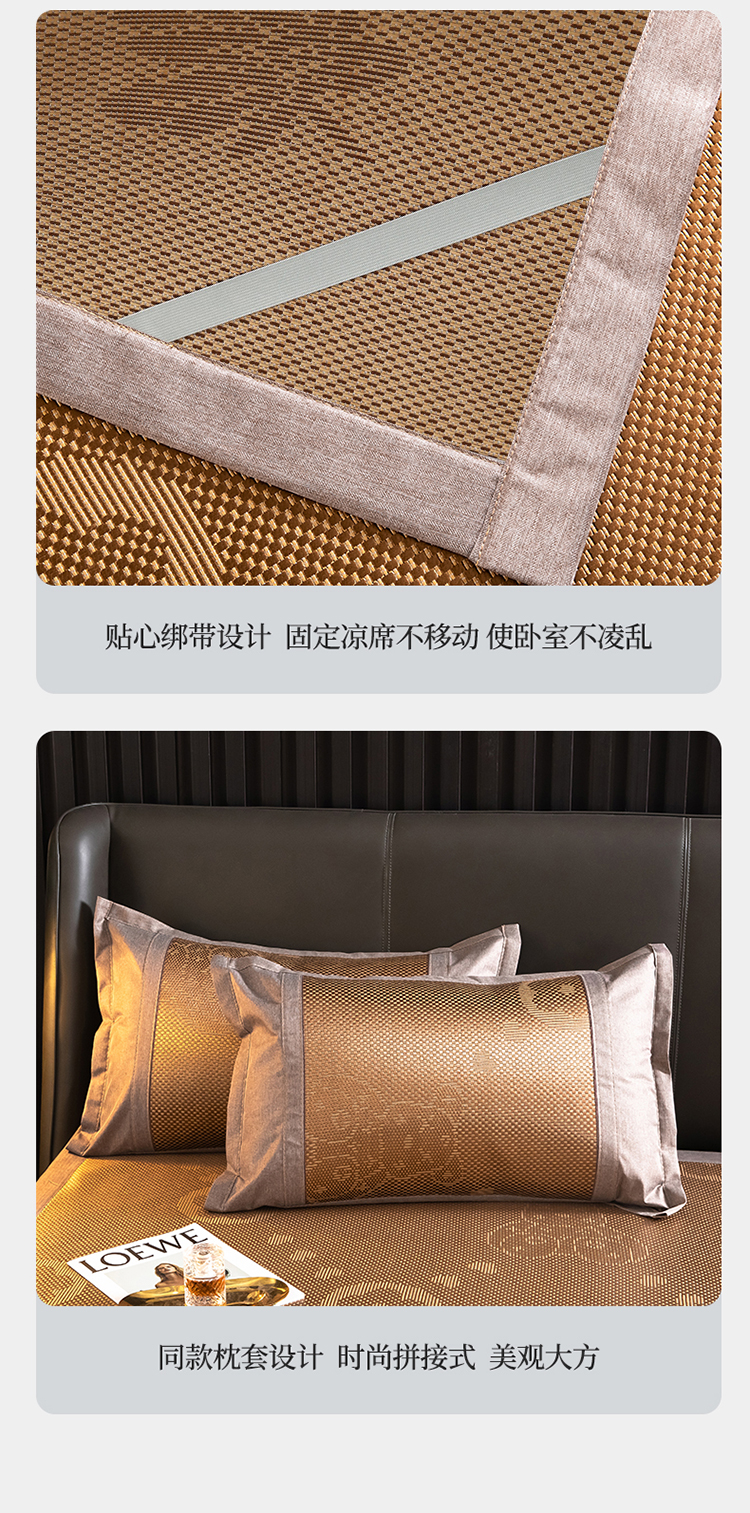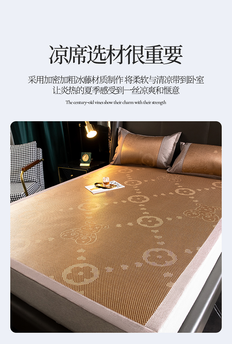 商品名称: 伊被源 2023新款高密度纺织碳光冰藤席 路易登-咖