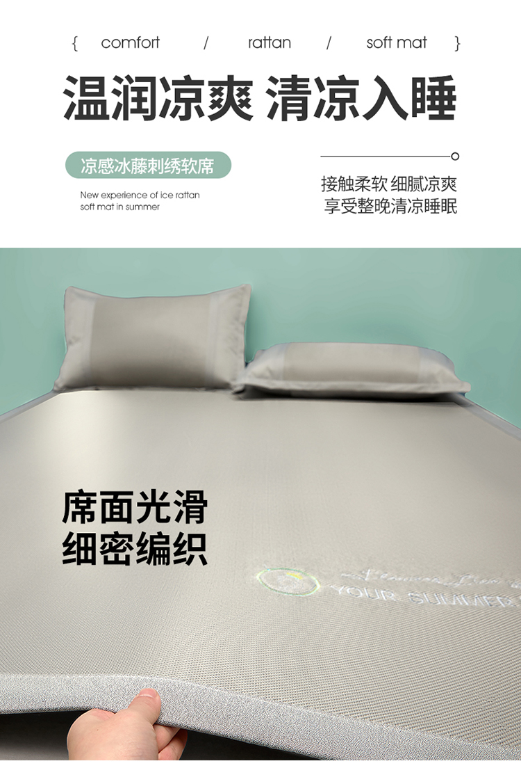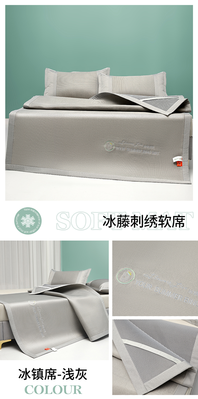 商品名称:2023新款凉感冰藤刺绣软席-冰镇席、酷爽席 冰镇席-浅灰
