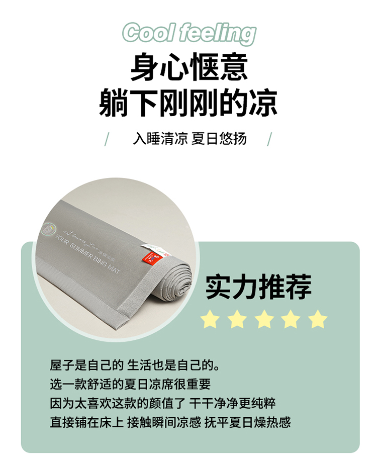 (总)伊被源 2024新款亲肤舒适品味生活凉感席,宝石蓝,肌理灰,梦境黄,清透绿,水晶绿