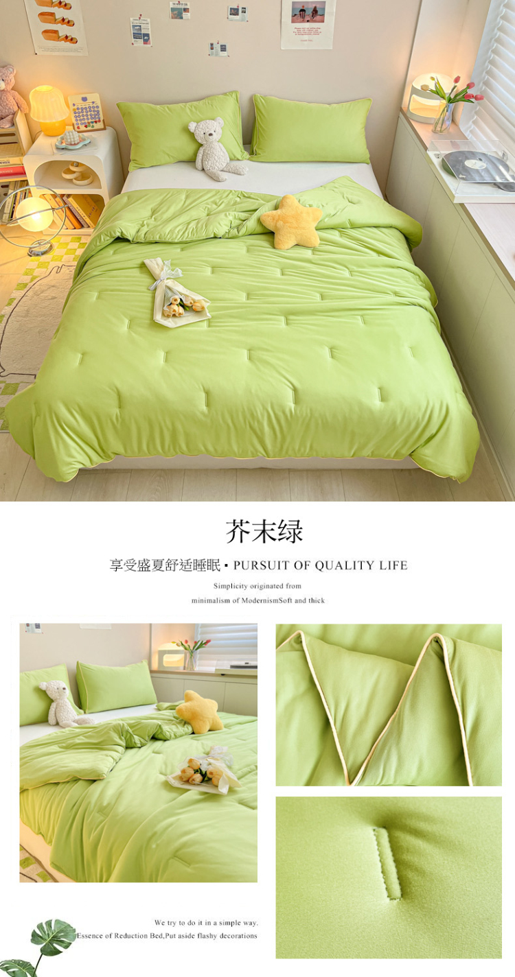 • 91家纺网 家纺一手货源 找家纺 寐居2023新款撞色针织棉夏被 芥末绿