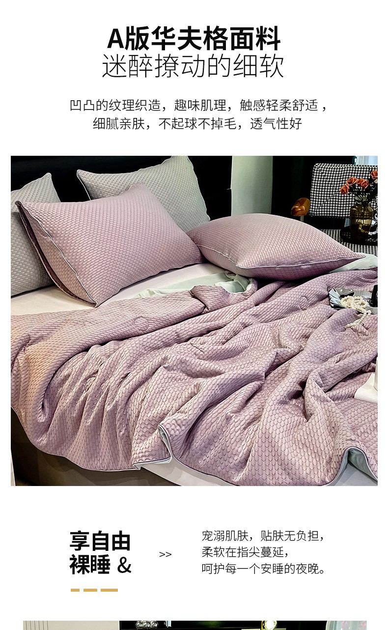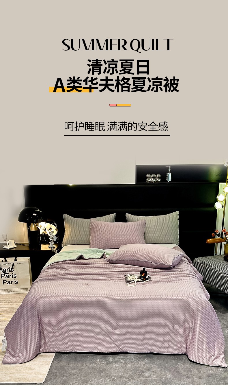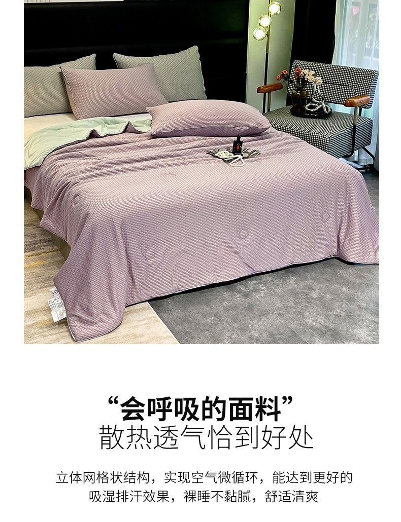 商品名称:慕晨 2023新款A类华夫格凉感丝夏被空调被夏凉被 华夫格浅紫绿