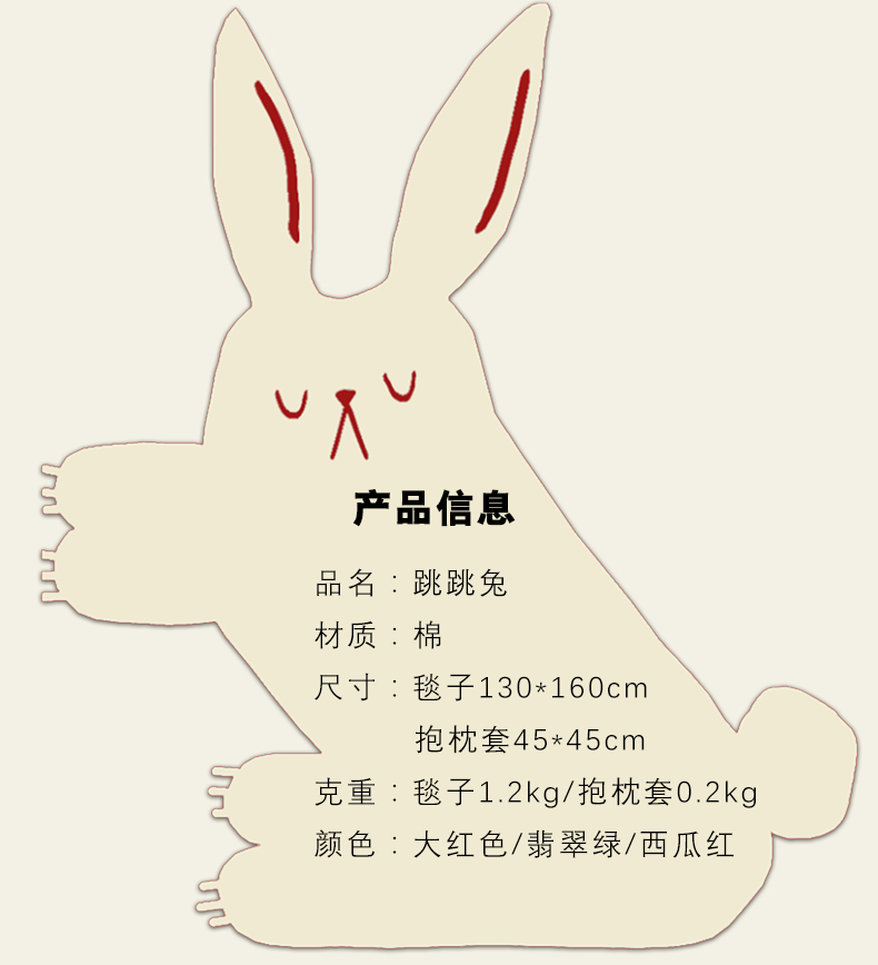 商品名称:(总)暖绵绵 2025新款全棉跳跳兔抱枕套靠枕靠垫方枕方垫午睡靠枕套
