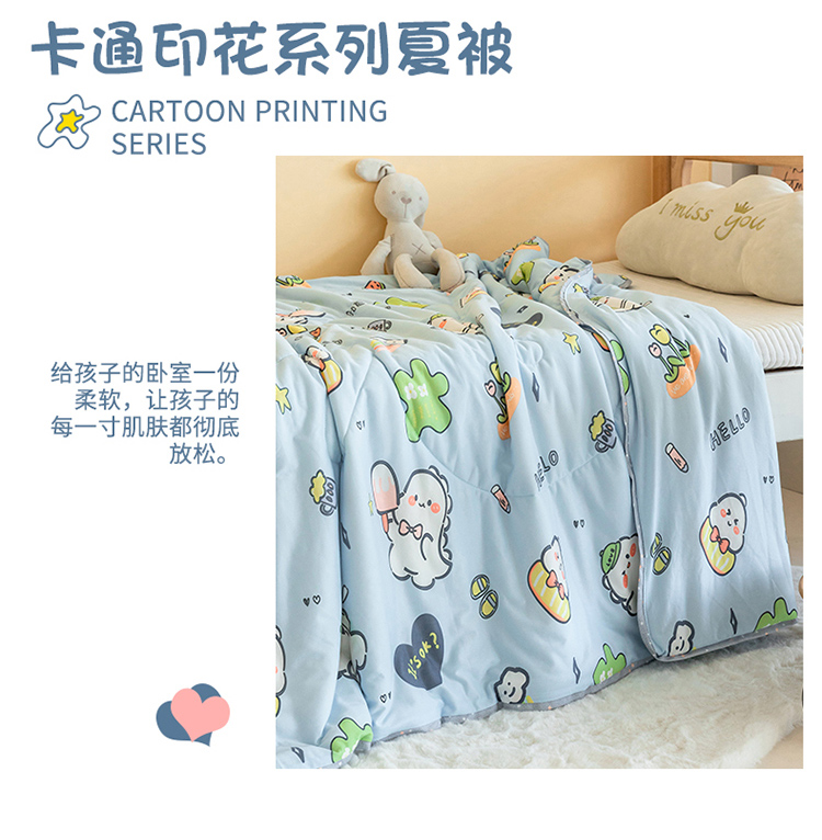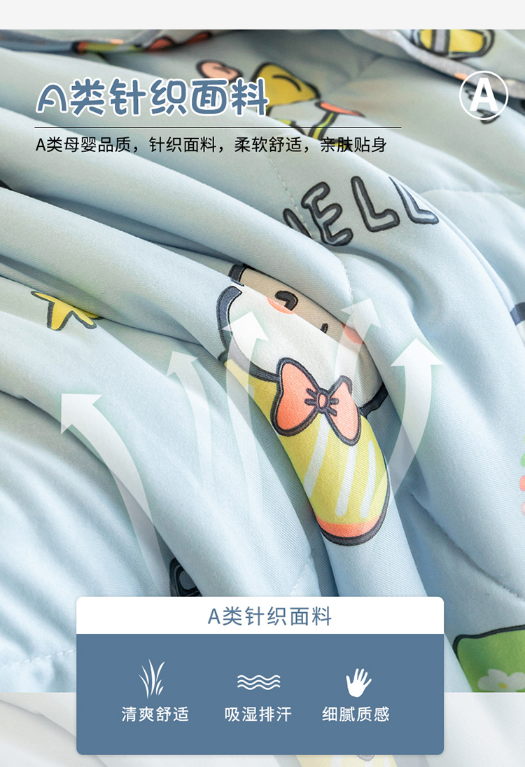 (总)喜多兔儿童家纺 2025新款小惊喜儿童蚕丝蛋白天丝抗菌夏凉被,粉色礼貌小鸭,粉色围裙小兔宝,黄色多彩小狗,黄色画画小猫,灰蓝色活动熊猫,灰蓝色运动小狮子,卡其色勤劳小马,卡其色围兜小熊,绿色萌萌恐龙,绿色微笑小猴