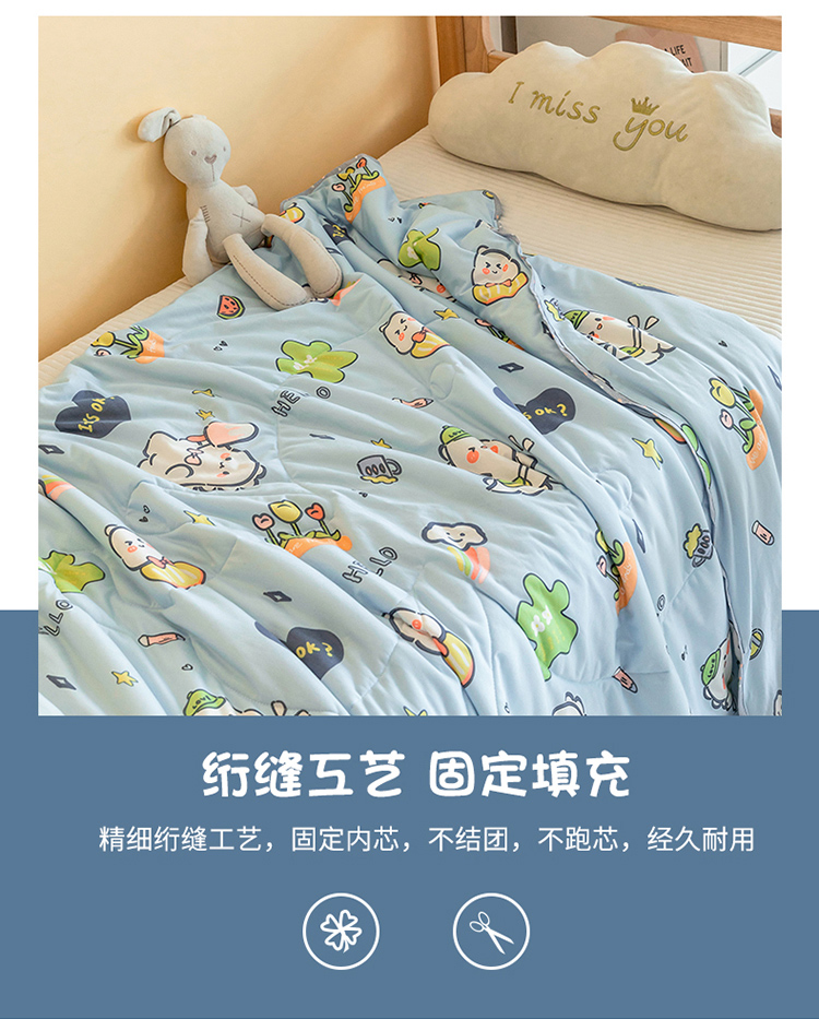 (总)喜多兔2025新款高精密人字棉贴布绣奶里奶气夏被夏凉被,粉色奶气小兔,黄色奶气小狗,咖色奶气小熊,蓝色奶气小象,绿色奶气小猫