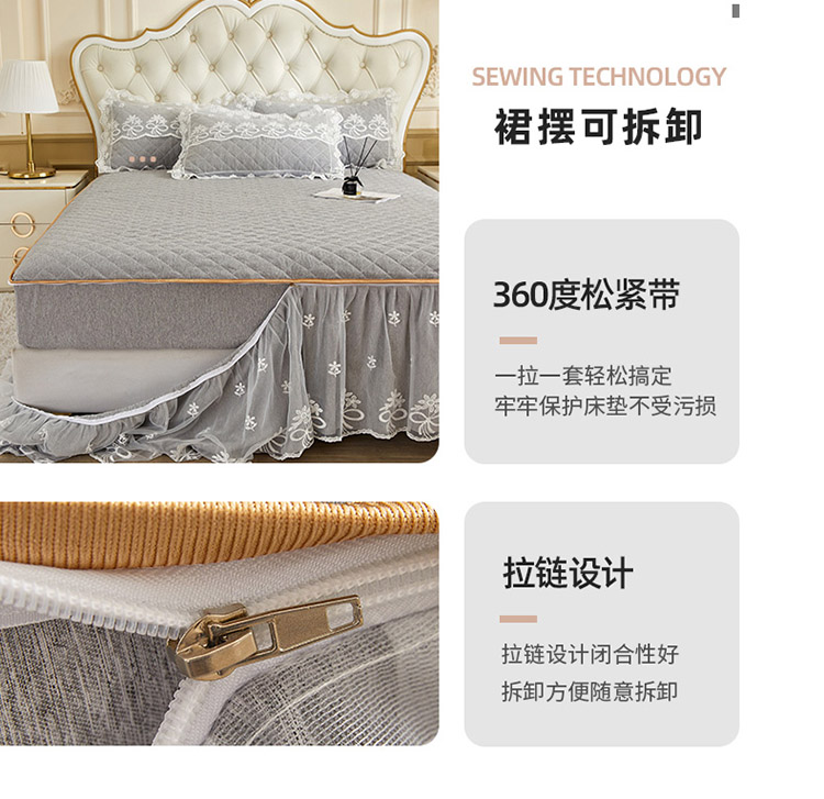 当前位置: 91家纺网 > 商品网购 > 床品套件 > 四件套 > 恋尚 2023新款色织系列床笠床裙可脱卸 四件套 芙娅-灰色