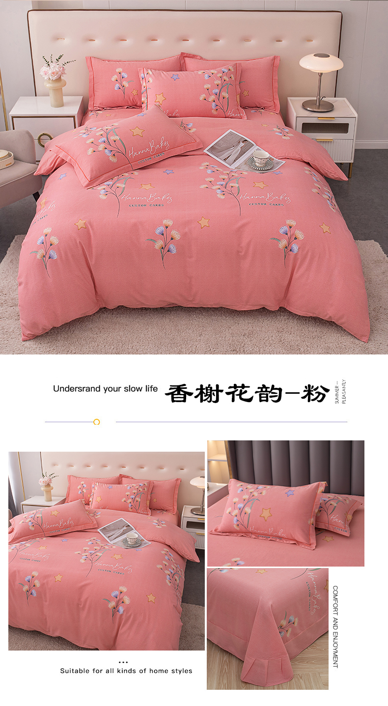 喜四方 2024新款全棉磨毛全棉印花四件套 香榭花韵-粉